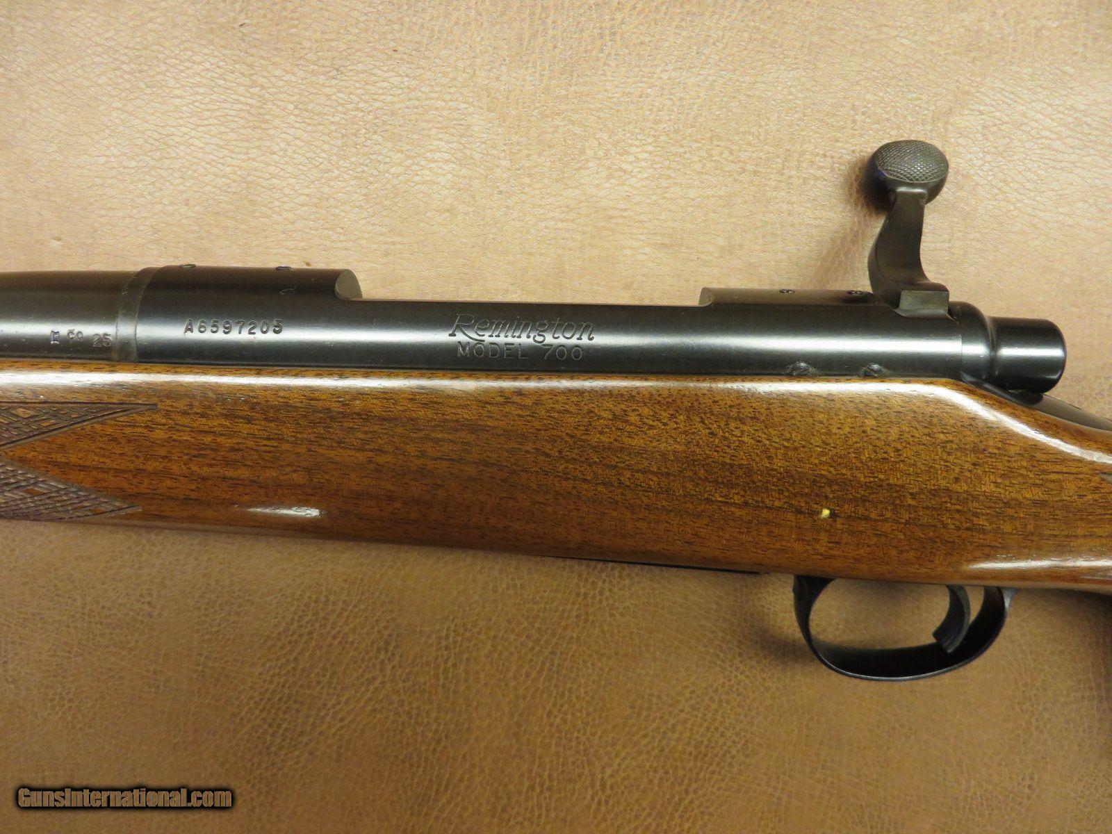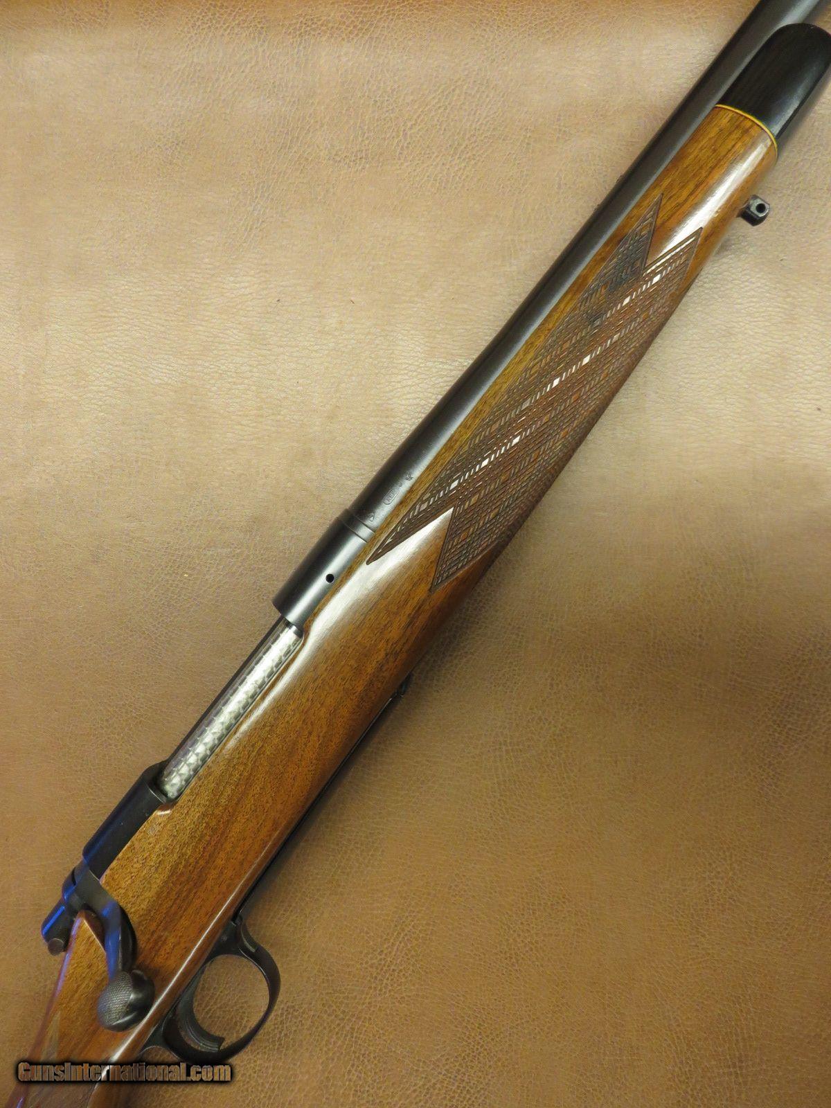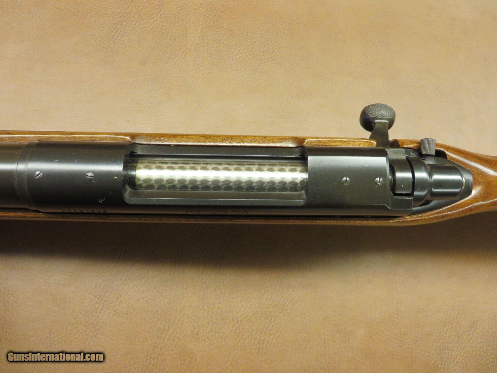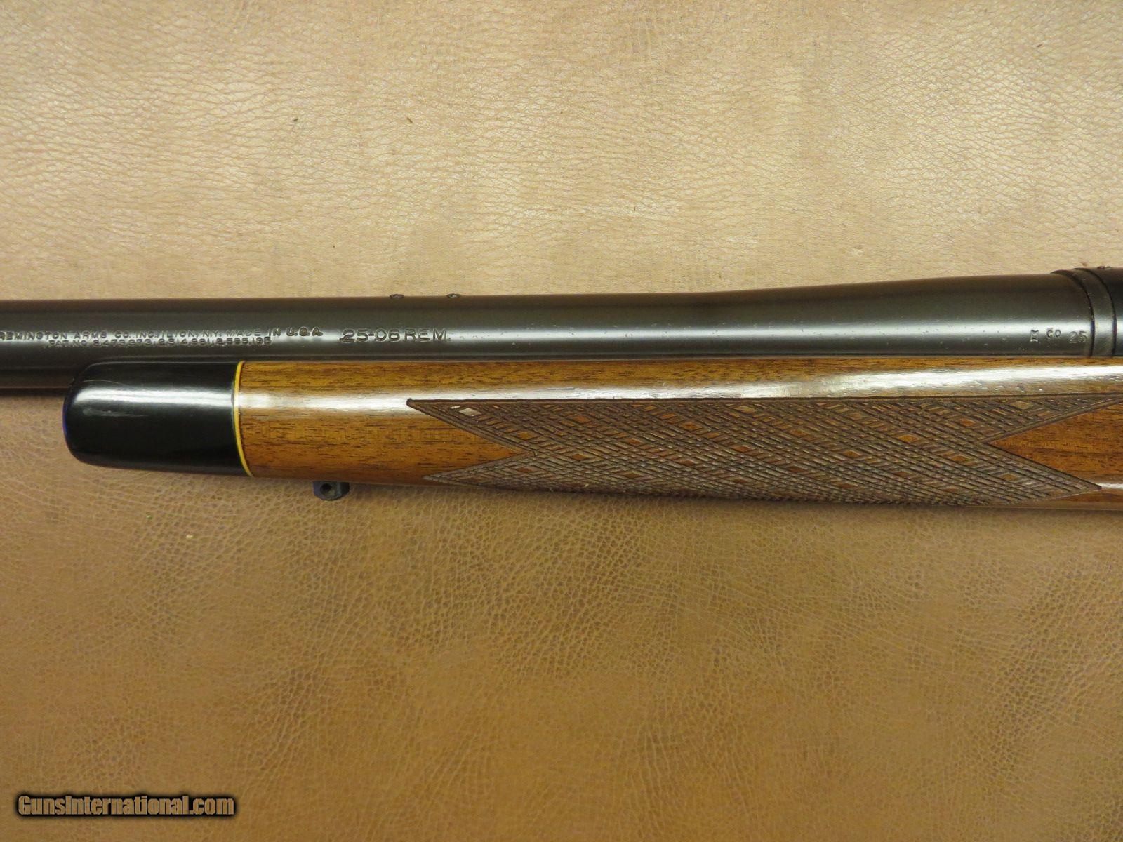 Description: 25-06 Remington with 24 inch heavy barrel. Serial number A6597xxx. High gloss checkered walnut stock has black forend tip and pistol grip cap, sling swivel studs, and original butt plate. All in 95% condition. SOLD |