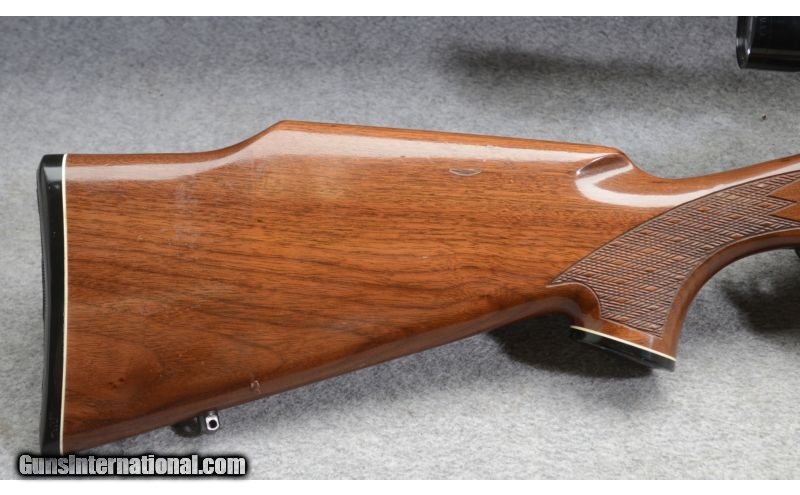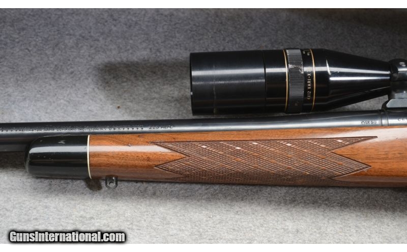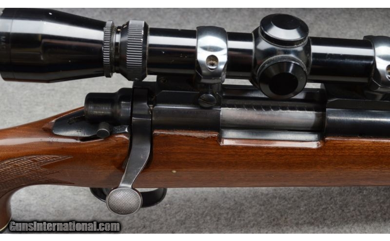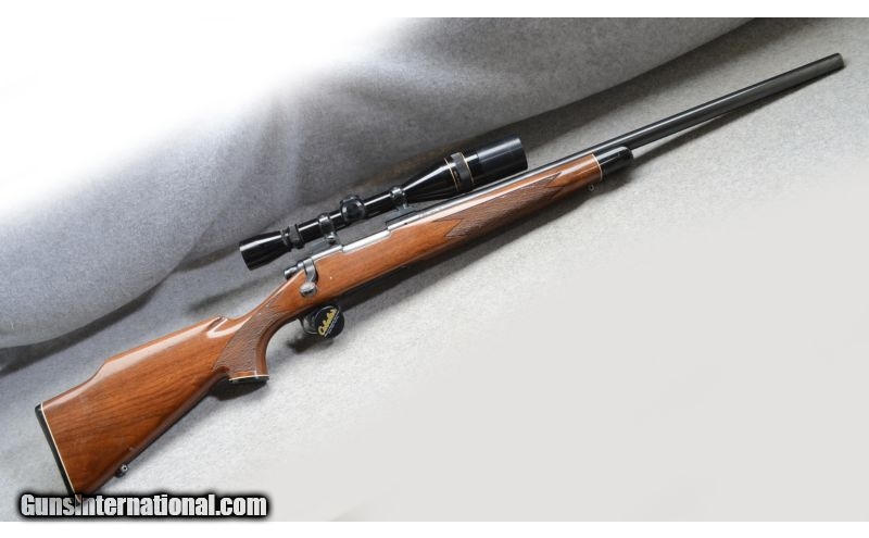 Description: SOLD Caliber Info: .223 Rem Metal Condition: Good to very good. No apparent rust but does have a number of scratches on the barrel and floor plate. About what you would expect of a field use varmint gun. Wood Condition: Good. Most ofthe finish is still good , but does have a number of shallow dings, dents, and scratches from use. Bore Condition: Bright and shiny. Barrels: 24 inch mid weight (.840" dia) Stock: Monte Carlo pattern with cheekpiece. Black grip and forearm tips. Stock Dimensions: 13-3/8 inch LOP Butt Pad: Black synthetic plate Weight: 9 lbs - 15 oz as shown with scope Sights: Drilled and tapped for your choice of scope. Furnished with a Leupold Vari-X II, 4-12x scope. Item Location: Rogers,, MN |