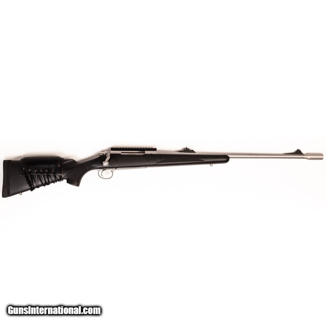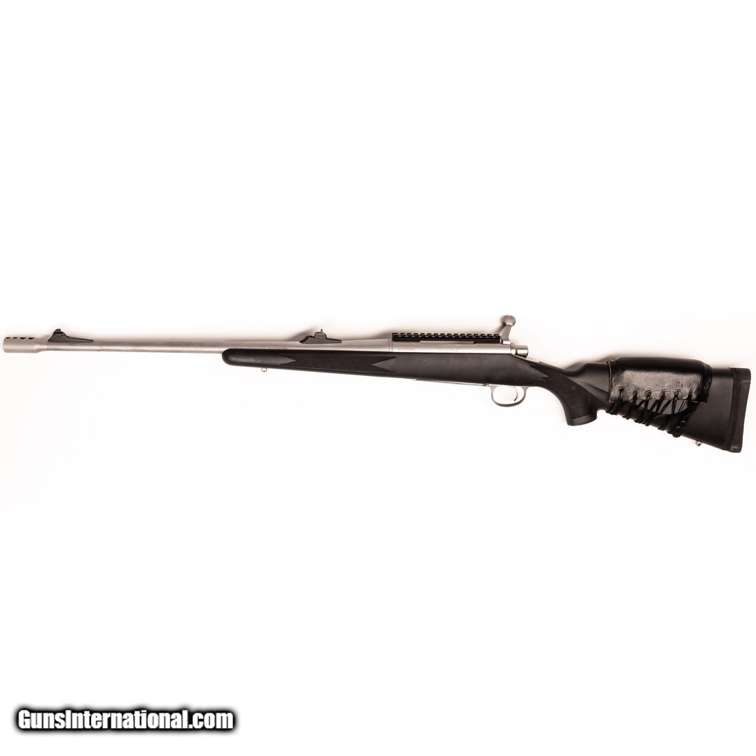 Description: Guns Listing ID: 528173 Up for sale is this Remington Model 700 BDL, a bolt-action rifle that delivers three rounds of 375 H&H Mag from a 23.5\" barrel. It sports a Diamond sight, 6.2\" top rail, muzzle device, swivel studs, recoil pad, and a leather cheek rise on the stock. Overall, it‚‚s in very good condition, with some marks on the barrel and stock. Serial number: S635403 SOLD Manufacturer: REMINGTON Model: MODEL 700 BDL Caliber Info: .375 H&H MAG Condition: Used - Certified Barrels: 23.5 BARREL Finish: STAINLESS STEEL |