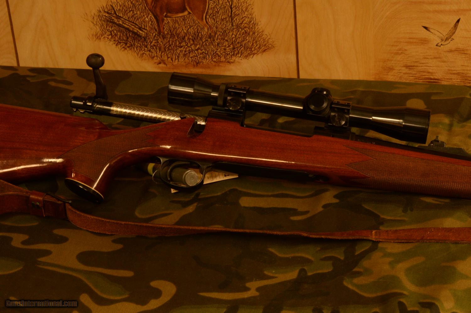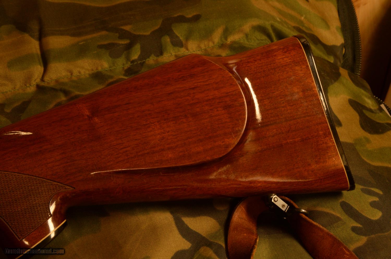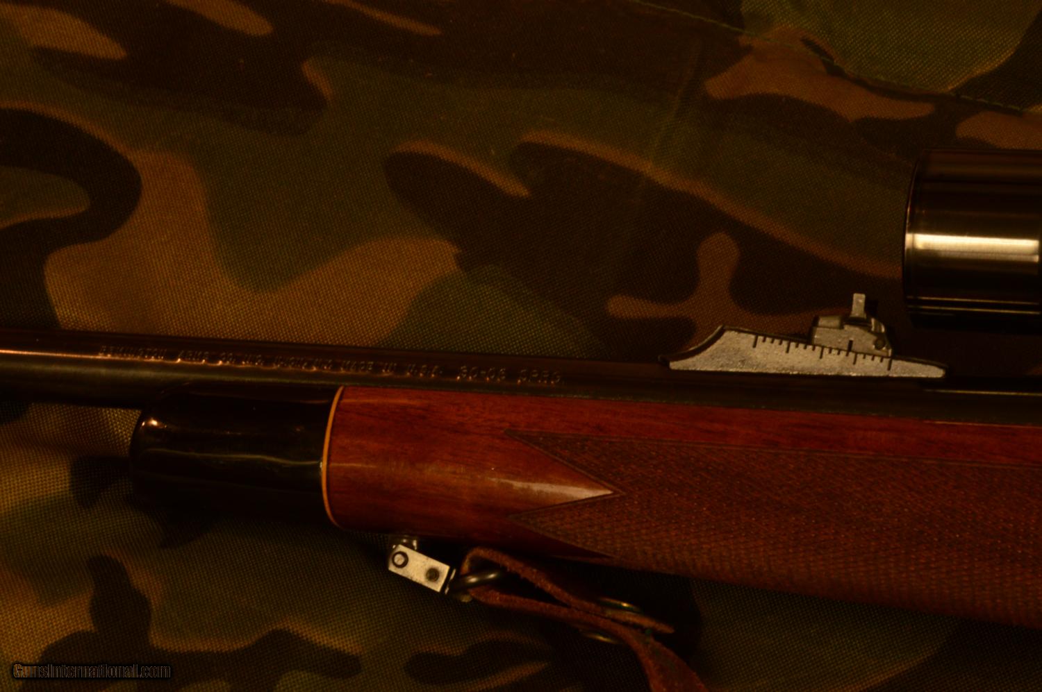Description: This Remington model 700 30-06 BDL rifle is in excellent condition and is very smooth and tight. The bore has clean rifling and the wood is unmarked and the cheek piece on the stock provides for comfortable shooting. This gun was used but not shot much and also comes with a no name scope and sling which both are in good condition. Manufactured between 8/9/1999 and 10/1/2001. SOLD |