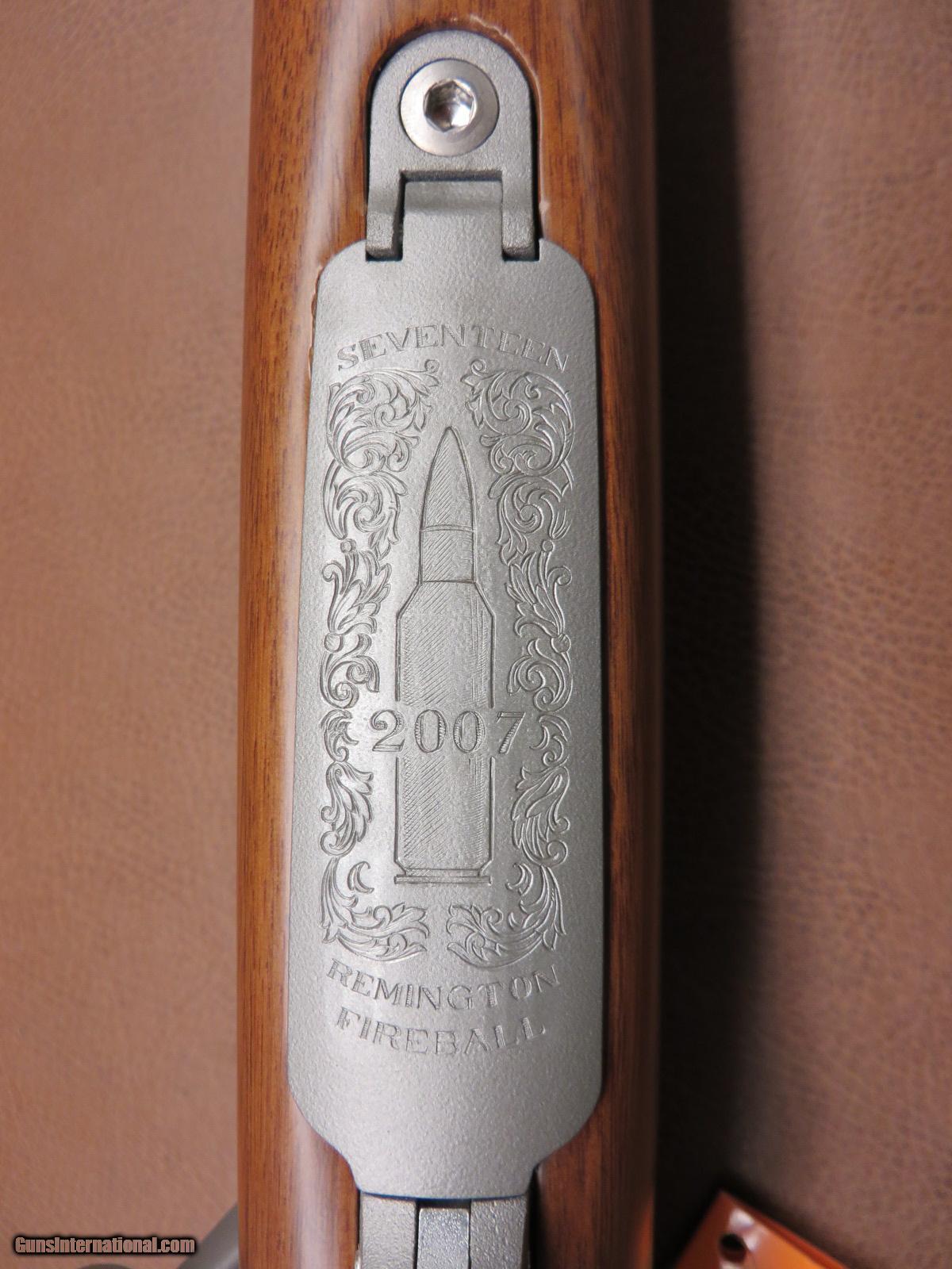 Description: .17 Remington Fireball has 24 inch stainless steel fluted barrel. Engraved floorplate marked 2007 and 17 Remington Fireball. Satin finish checkered walnut stock has black forend tip and pistol grip cap, sling swivel studs, and LimbSaver recoil pad. New in original box with papers. Has had the trigger update to X Mark Pro. SOLD |