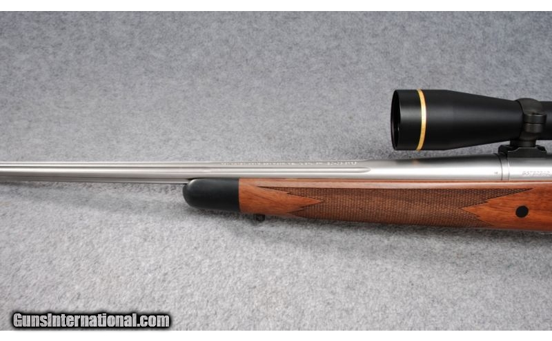 Description: SOLD Caliber Info: .30-06 Sprg. Metal Condition: Insignificant handling marks. Wood Condition: Very minor contact and handling marks. Bore Condition: Bright with strong rifling. Barrels: 24". Stainless fluted. Triggers: Factory recall work is complete. Stock: Walnut with finely checkered pistol grip and cheekpiece. Stock Dimensions: 13 5/8" LOP Fore End: Walnut with wraparound checkering and black tip. Butt Pad: Soft rubber. Weight: 8 Lbs. 7 Oz. Sights: Leupold VX-3 4.5-14X40 30mm Long Range Scope. Extras: Scope, bases and rings. Item Location: Billings, MT |