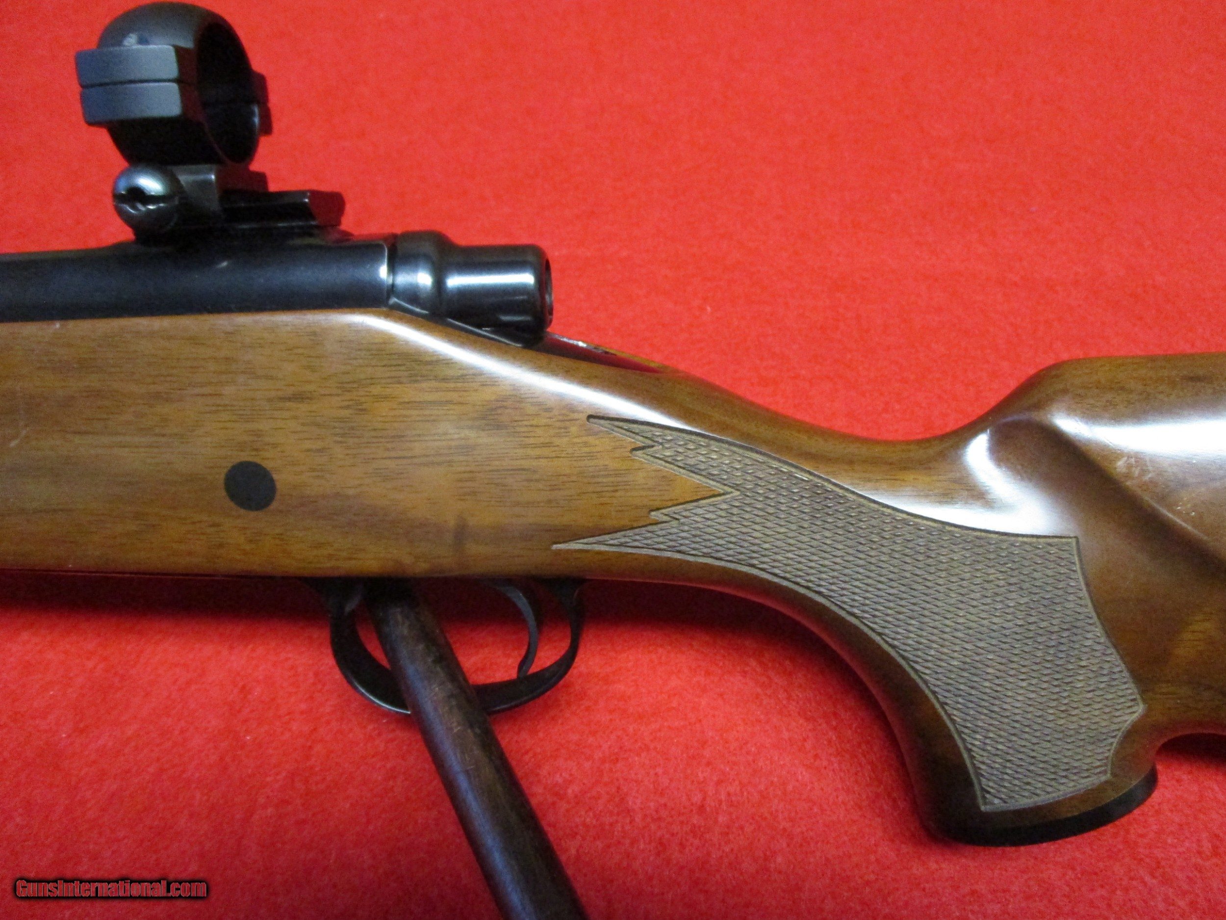 Description: The Remington Model 700 is one of the most famous, and most popular bolt action rifles ever made, so much so that it is still in production 55 years after its introduction! The Model 700 rifle has been used all over the world by hunters, military snipers, police, and match target shooters. Present is the 700 Classic model. According to the barrel date code, the rifle left the Remington factory in 1986. The stock is a beautiful Monte Carlo with black tip, sling swivel studs, and elegant checkering. It is equipped with a solid rubber butt pad. There is some unusual wear in the wood around the forward sling swivel stud. Other than this, wear on the stock is minor with maybe a few dings in the cheek piece. The pistol grip cap is somewhat discolored on the bottom with light spots. The bluing is in 98 percent condition with some loss on the floor plate’s left edge and on the bolt knob. The bore is in excellent condition with little to no powder residue. The action itself is very smooth. Combined with the classic .30-06 and a good scope this would make a very effective hunting rifle. SOLD Manufacturer: Remington Arms Co. Model: 700 Classic Serial Number: B6780667 Caliber Info: .30-06 Springfield aka 7.62x63mm Bore: Rifled - 4 groove Condition: Used - Good Barrels: 22.0 inches (559mm) Action: Bolt Action Stock: Monte Carlo checkered wood Fore End: Checkered wood with black tip Butt Pad: Remington rubber pad LOP: 13.5 inches (343mm) Finish: Blued Sights: None, Scope rings Manufacture Date: April 1986 |