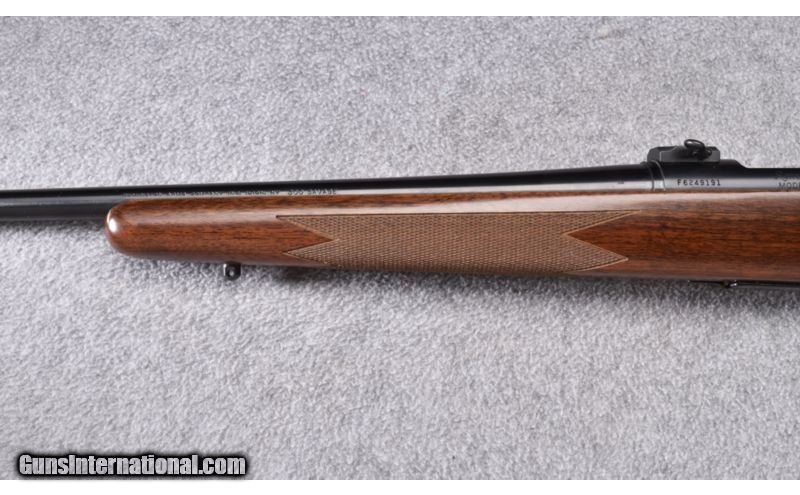 Description: Wood shows a couple light storage marks. Blue and bore remain excellent. No box. SOLD Manufacturer: S/N - F624XXXX Caliber Info: .300 Savage Metal Condition: Excellent Wood Condition: Very Good Bore Condition: Excellent Barrels: 24 in. Triggers: Factory Stock: Checkered Walnut P.G. Stock Dimensions: 13 5/8 in. LOP Fore End: Checkered Walnut Butt Pad: Brown Rubber Weight: 7 lbs. Sights: None - Leupold Detachable Bases Included Item Location: Wheeling, WV |