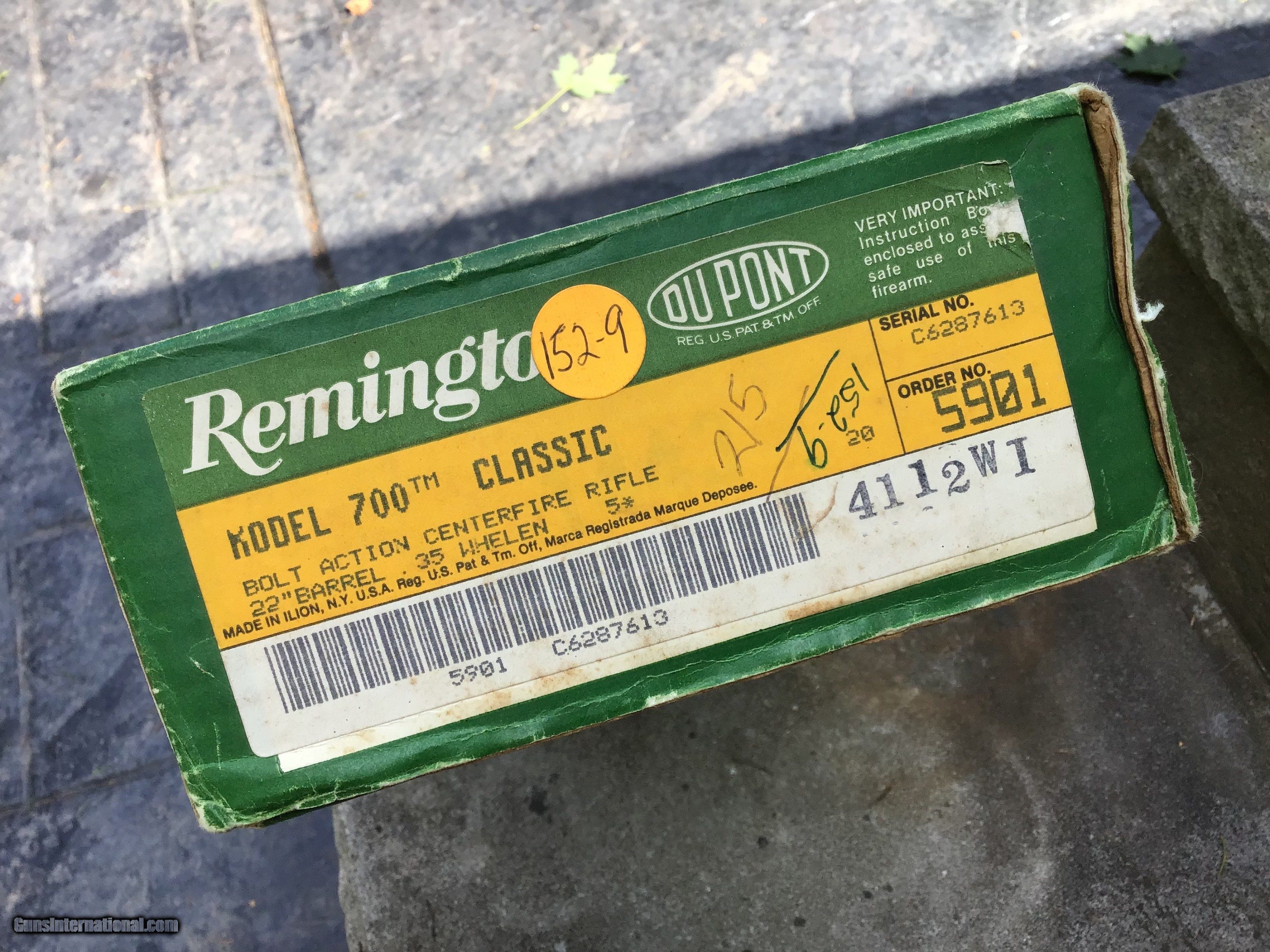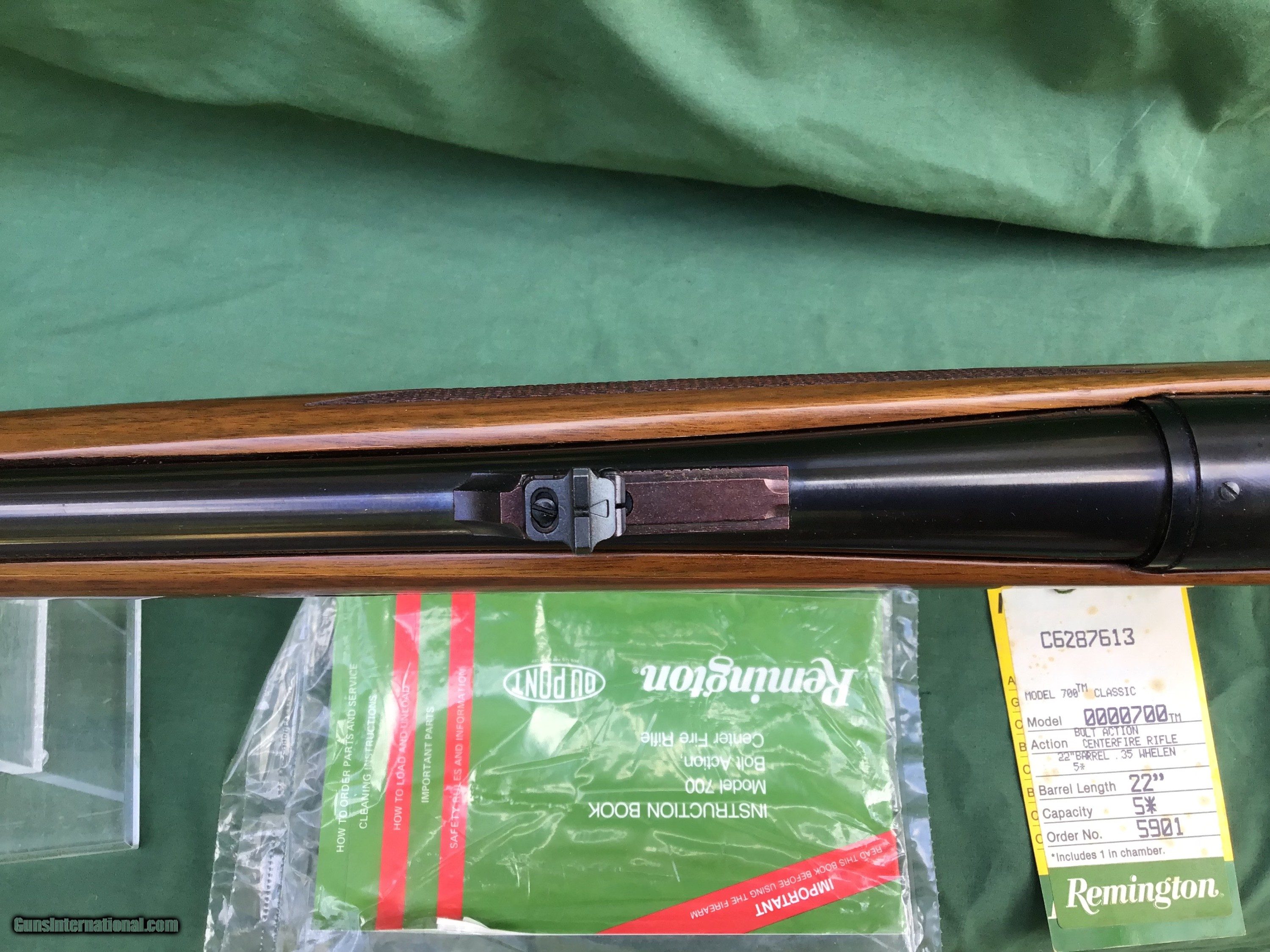 Description: Remington BDL Classic Model 700 in 35 Whelen. Manufactured in 1988 for one year only. Comes with original box, papers, and hang tag. This rifle was used very little if any? Mint bore. 22" barrel with checkered stock, and Remington pad. Has hooded front sight and factory rear sight. Barrel and receiver retain well over 95% original blue. Stock is in great condition showing some small handling marks. Must ship to a FFL or Curio and Relics license holder. This firearm as with any other should be checked first by a gunsmith before any attempt is made to fire / operate it. Please feel free to ask questions. SOLD |