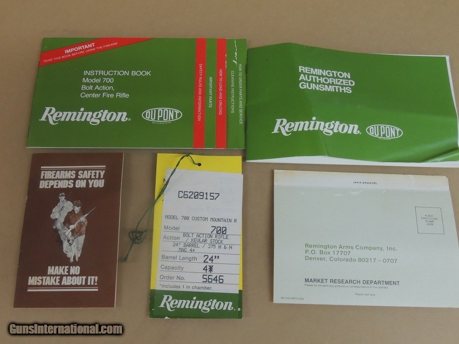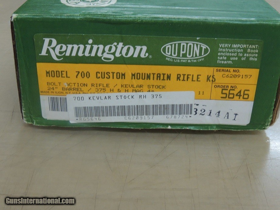 Description: Remington Model 700 Custom Mountain Rifle KS in 375 H&H Magnum, 24" Barrel, appears unfired, Original Box, Papers, Hang Tag & Sling Swivels $2750 Helpful Information: *Please make sure to include our inventory number and or Item description in text messages * If this item has the Box, Papers or various extra items they will be pictured and described, This item listing is in stock and available for purchase unless the Sale Pending Tag is present.* No sales to California *Payment Options *Postal Money Order* Cashiers Checks *Personal Checks (Item held until Check Cleared* Layaway 120 days*No Interest*Pay any way, any time you like over the term *Deposit required *Credit Cards Visa or Master Card 3.5% fee added to total sale* GA residents 7% sales Tax Applies *Best Phone Number for Calls or Text 229-424-8450* Shipping & Insurance $65.00 SOLD |
