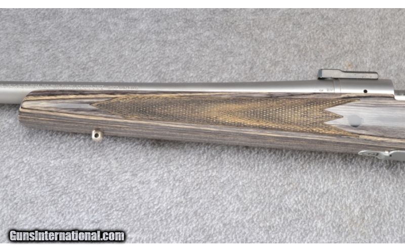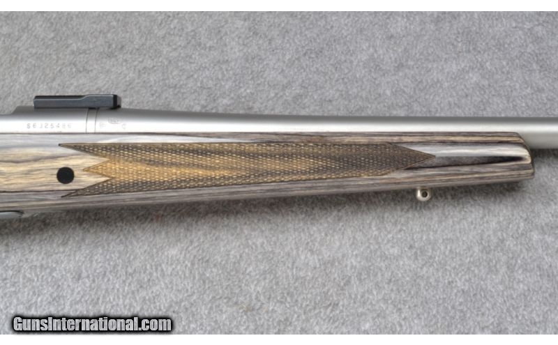 Description: Front of floorplate has a small spot of flaking finish, with remainder excellent throughout. Complete with scope mounts.No box. SOLD Manufacturer: S/N S632XXXX Caliber Info: .300 Win. Mag. Metal Condition: Excellent Wood Condition: Excellent Bore Condition: Excellent Barrels: 24 Triggers: Factory Stock: Checkered Laminate Pistol Grip Stock Dimensions: 13 3/8" LOP Fore End: Checkered Laminate Butt Pad: Black Rubber Weight: 8 LB Sights: None- Mounts Included Item Location: Wheeling, WV |