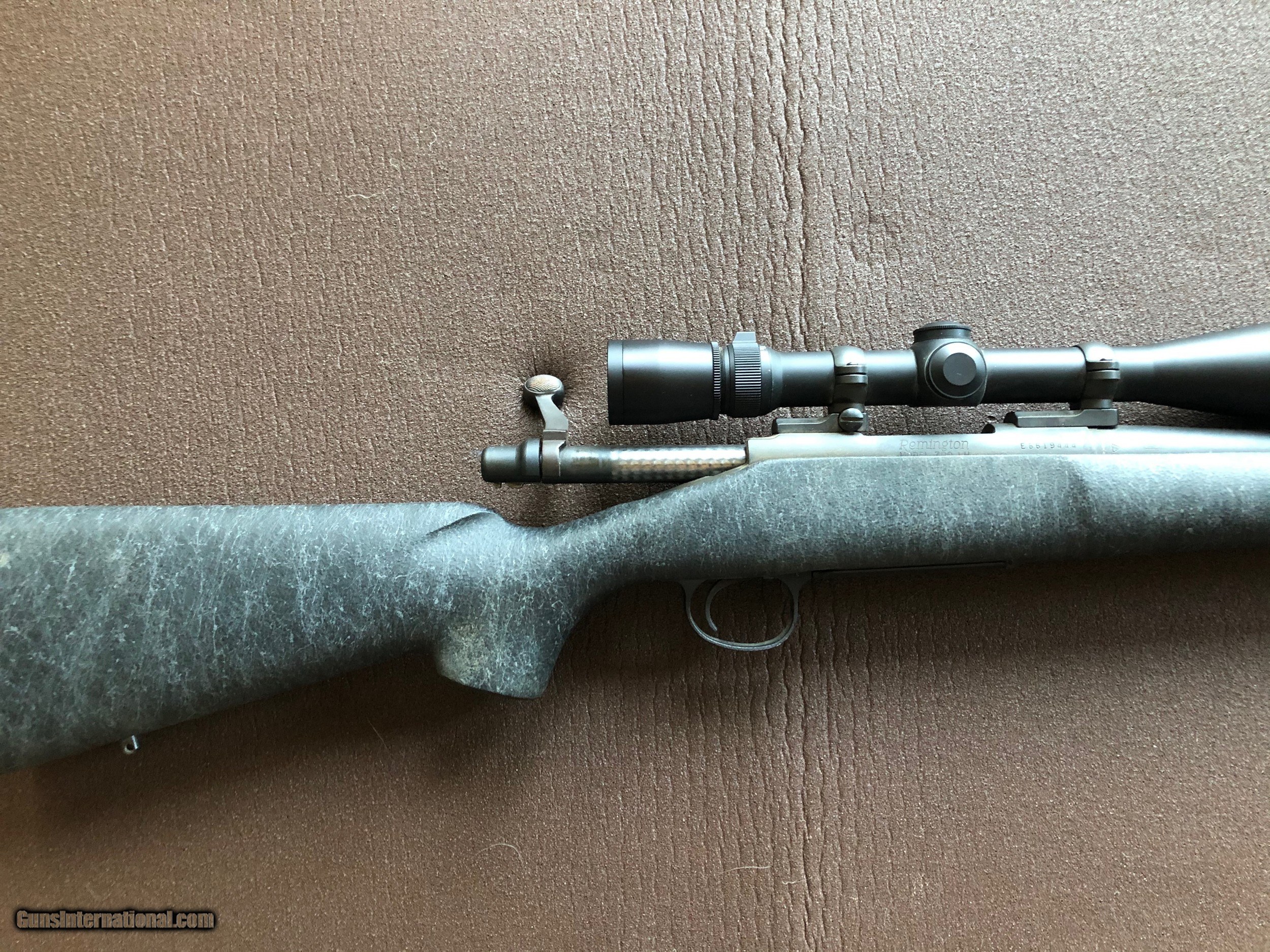 Description: Left- handed Remington Model 700 rifle with heavy varmint barrel, synthetic stock. Fewer than 100 rounds through barrel. Excellent condition. Includes Leupold VX III 8.5-25 power scope. SOLD Rifle Caliber: .22-250 Remington Manufacturer: Remington Model: 700LH Serial Number: E6619444 Barrel Length: 26 inches Condition: Excellent Metal Condition: Excellent |