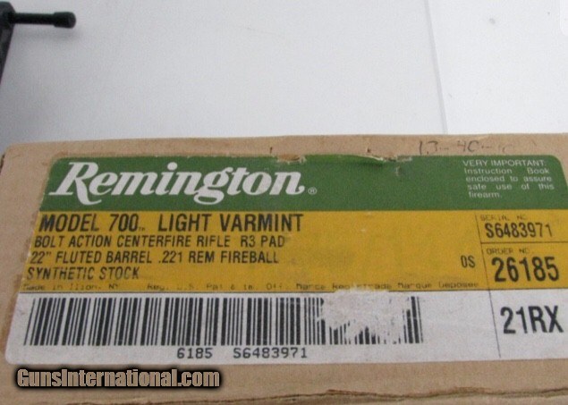 Description: This is a Remington model 700 Light Varmint, bolt action rifle chambered in 221 Fireball. Factory model # 6185. The fluted barrel is 22 inches long with a clean bore and strong rifling. It has a 13.5 inch long length of pull on what I believe is a Remington marked, HS Precision stock and blind magazine. The finish is in great condition with light signs of use. The limbsaver recoil pad is sticky around the edges where it has had some bore cleaner get on it. This is very common with the Limbsaver. This is an easily replaceable item. It comes in the factory box with manual. Check out the pictures to see how nice this rifle really is. Remington 221 Rem Fireball Light Varmint/Stainless Fluted Barrel/Synthetic Nearly two pounds lighter than the Model 700 VS SF, the Model 700 LV SF (Light Varmint Stainless Fluted) is the ideal "light carry" varmint rifle. The 22" medium contour stainless steel barrel (0.657 muzzle O.D.) features six longitudinal flutes that substantially increase the heat dissipating surface area of the barrel, which helps retain multiple shot precision and extend barrel life. The recessed bolt face of the jeweled bolt completely encloses the cartridge head in three rings of steel for unmatched strength. All metalwork features a stainless finish for added durability and corrosion resistance. The action is pillar bedded in a custom designed, black composite stock with a semi-beavertail forend and blind-box magazine to provide extra stability and consistent shot-to-shot accuracy. The stock also includes swivel studs and the revolutionary R3 recoil pad. SPECIFICATIONS: Mfg Item Num: 6185 Category: FIREARMS - RIFLES Action :Bolt Action Caliber :221 Remington Fireball Barrel Length :22" Capacity :5 + 1 Trigger :Single Stage Safety :Two Position Length :41 5/8" Weight :6 3/4 lbs Stock :Black Synthetic Finish :Stainless Steel SOLD |