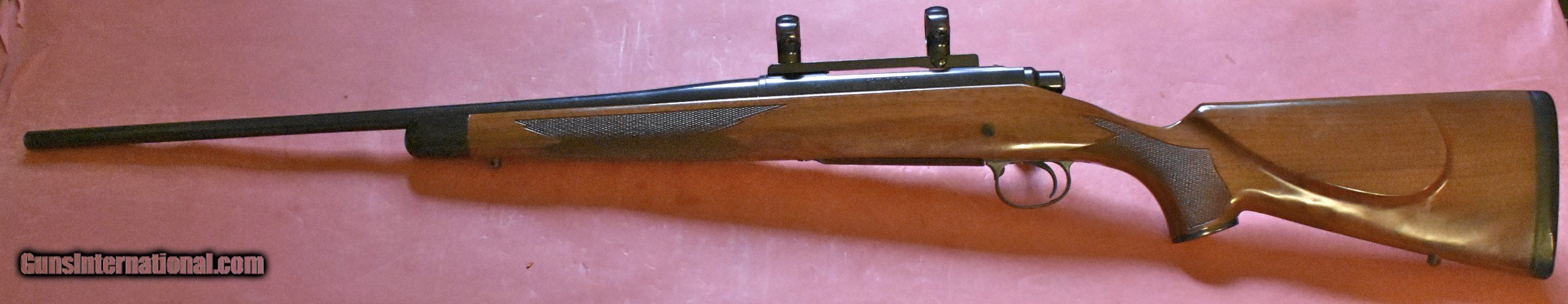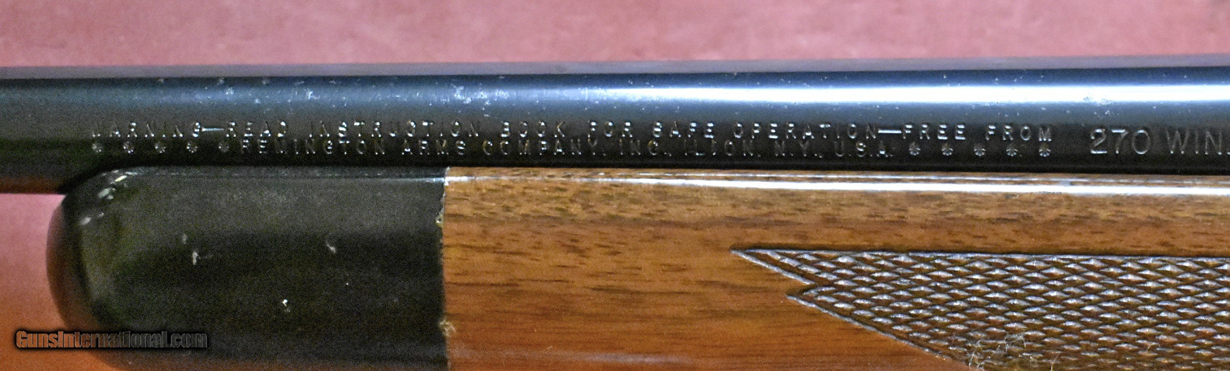 Description: Remington model 700 mountain rifle in 270 Win.Built in 1985,this rifle has the old style drop floorplate.The rifle is in mint all original condition.It retains 100% of the original blue and wood finish.The bore is mint and free of any rust or pitting.The stock is sound with no cracks or handling marks.This is a great lightweight all around big game rifle.this one has Redfield bases and 1" rings installed. Hard to find in this condition. SOLD Manufacturer: Remington Model: 700 Mountain rifle Serial Number: B6756383 Barrel Length: 22 Caliber Info: 270 Win Metal Condition: mint Wood Condition: mint Bore Condition: mint Action: bolt Manufacture Date: 1985 barrel code XF |