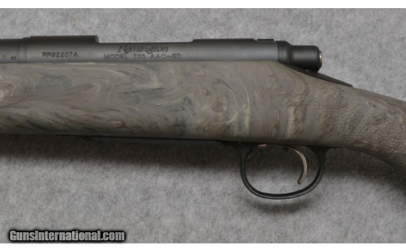 Description: The Model 700 SPS Tactical AAC®-SD™ is ready-made to add your tactical accessories of choice. Its 20” heavy barrel is threaded to accept AAC® and other 5/8-24 threaded flash hiders, muzzle brakes and suppressors. The Hogue® Overmolded Ghillie Green™ pillar-bedded stock and X-Mark Pro® Externally Adjustable Trigger complete this precision, tactical package. SOLD Caliber Info: .308 Winchester. Chambers: Internal magazine fed bolt action repeater. Metal Condition: Minor handling marks. Bore Condition: Strong lands and grooves. Barrels: 20 In, threaded, heavy barrel. Triggers: Single, X-Mark Pro. Stock: Hogue® Overmolded Ghillie Green¿. Stock Dimensions: LOP 13 3/4 In, DAC 1 1/2 In, DAH 1 3/4 In. Fore End: Textured grip panels. Butt Pad: Black, Hogue®. Weight: 8 Lb, 9 Oz. Sights: Drilled and tapped for scope mounts. Item Location: Anchorage, AK |