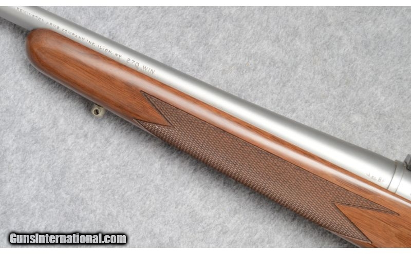 Description: Includes box. SOLD Caliber Info: .270 Win. Metal Condition: Very good with scratches. Wood Condition: Good with handling marks. Bore Condition: Shiny with good rifling. Barrels: 24 Stock: Checkered walnut. Fore End: Checkered walnut. Butt Pad: Remington red rubber recoil pad. Weight: 7-lbs., 12-ozs. Sights: Leupold one-piece scope base included. Item Location: Fort Worth, TX |