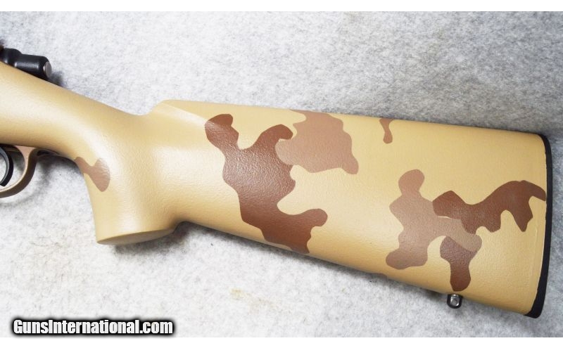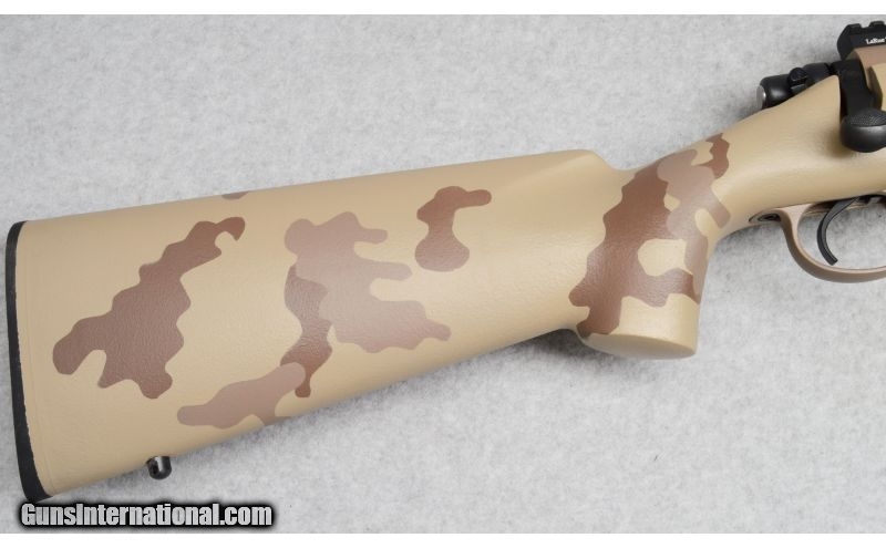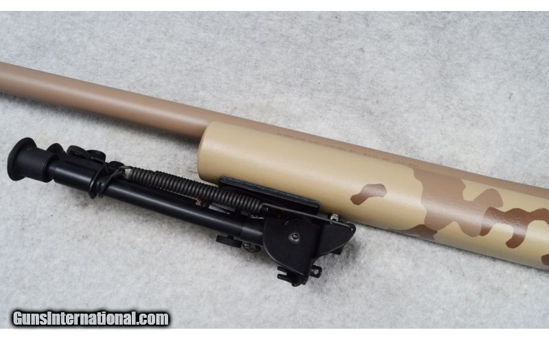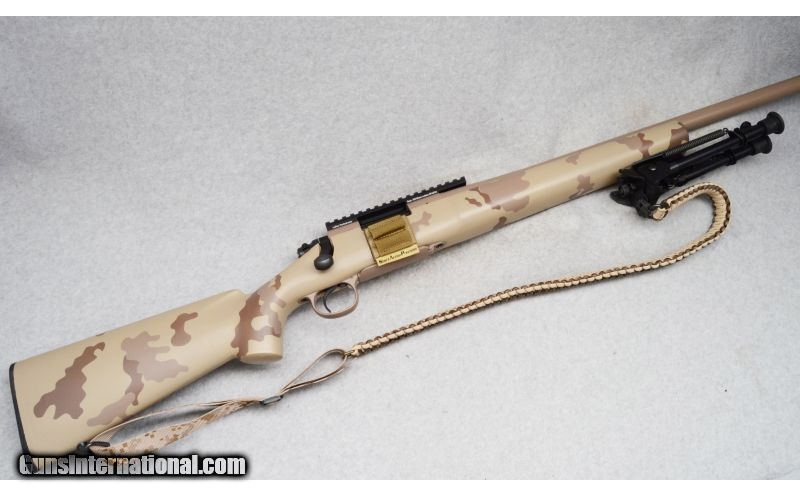 Description: Includes bi-pod and sling. SOLD Caliber Info: .308 Win. Metal Condition: Excellent. Wood Condition: Excellent. Bore Condition: Shiny with strong rifling. Barrels: 26" heavy barrel plus muzzle brake. Flat brown finish. Stock: Desert camo synthetic. Fore End: Desert camo synthetic. Butt Pad: Rubber. Weight: 10+ lbs. Sights: Picatinny rail. Item Location: Fort Worth, TX |