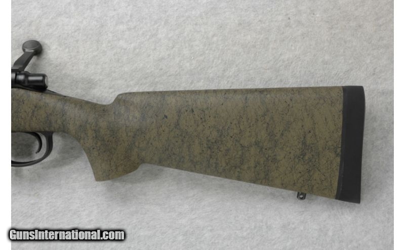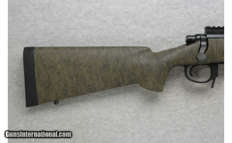Description: SOLD Caliber Info: .338 Lapua Chambers: Detachable magazine. Metal Condition: Excellent Bore Condition: Excellent Barrels: 28 inch wide fluted with the muzzle break. Triggers: Adjustable Stock: Smooth O.D. green with black webbing wide palm pistol grip. Stock Dimensions: LOP 13 1/2 inches. Fore End: Smooth O.D. green with black webbing semi-beavertail style. Butt Pad: Remington rubber recoil pad. Weight: 9 lbs. 0 oz. Sights: No iron sights. Top accessory rail on the receiver. Item Location: Richfield, WI |