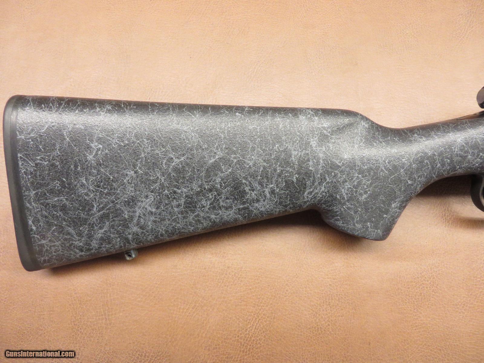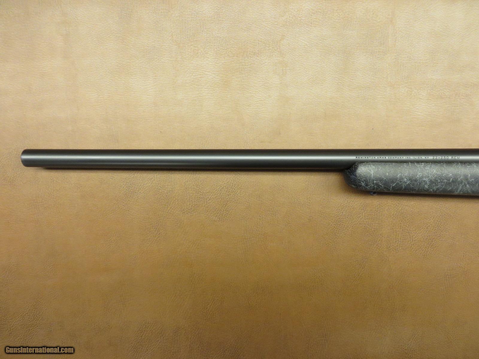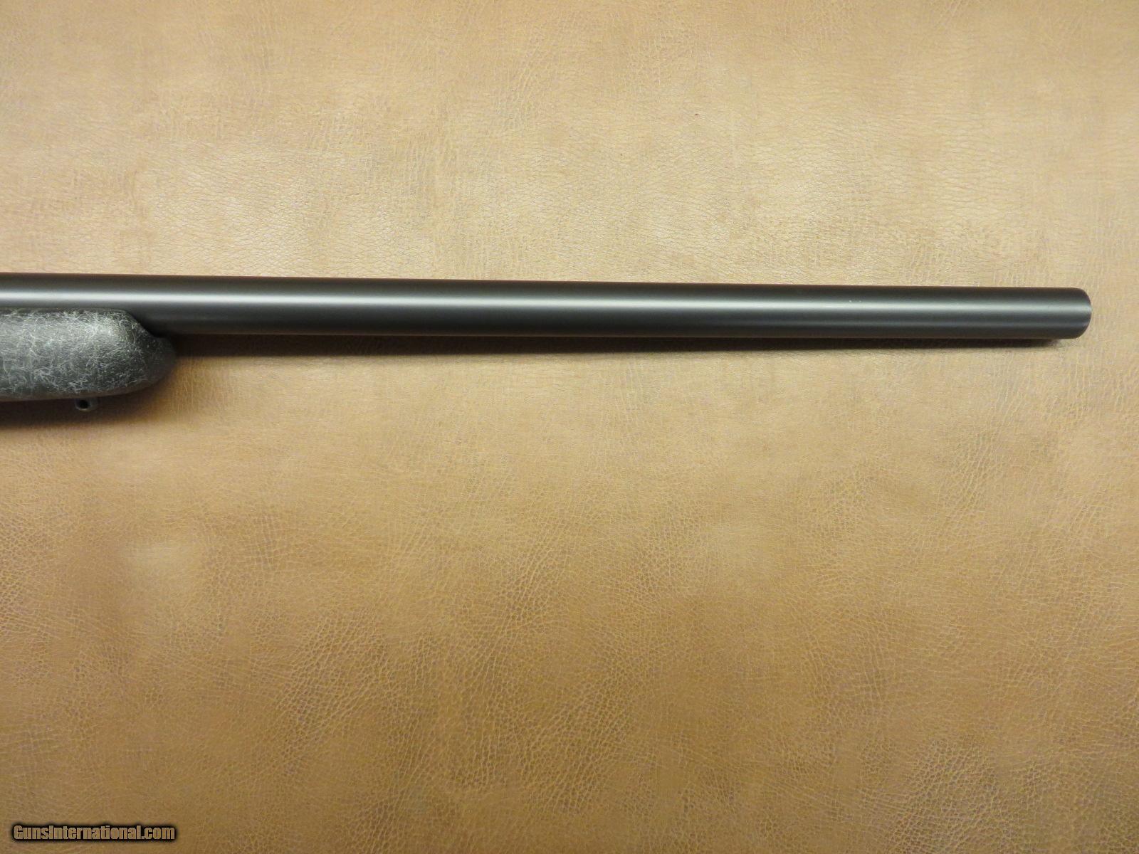 Description: .22-250 Remington has 26 inch heavy barrel. Weaver scope mounting bases. Matte finish metal in black synthetic stock with gray spiderwebbing, beavertail forend, sling swivel studs, and original rubber butt pad. All in 98% condition with one ding in the stock near the rear sling swivel stud. SOLD |