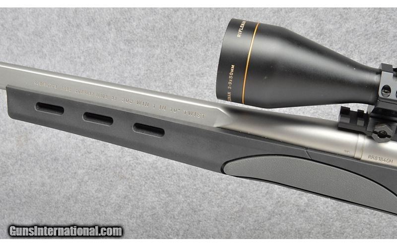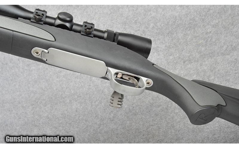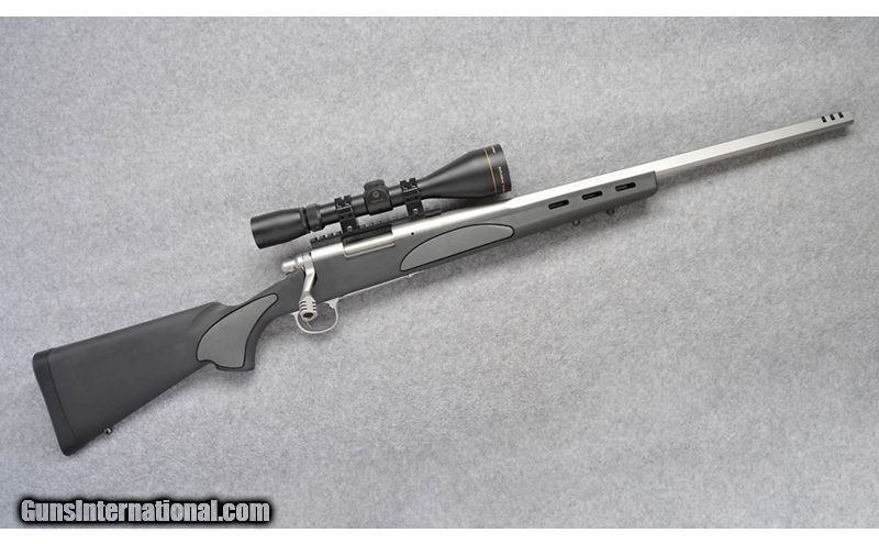 Description: Model 700 Varmint Tactical Rifle. Polymer stock with non-slip inserts. Triangular contour, 5R rifled barrel with integral muzzle brake. Pre-owned, very high condition. Includes factory box, bi-pod and manuals. .308 Winchester SOLD Metal Condition: "Satin Stainless, Few minimal freckles and handling marks Bore Condition: "1-10 inch, Bright Sharp Barrels: 22 Inch Triggers: X-Mark Adjustable Stock Dimensions: 13 1/4 " LOP Fore End: Vented Beavertail Forearm Butt Pad: Remington Recoil Pad Weight: 8 Lbs. 8 Ozs. Sights: Leupold Rifleman 3-9 X 50 mm Item Location: Buda, TX |