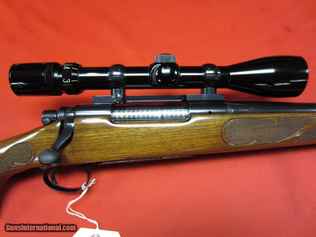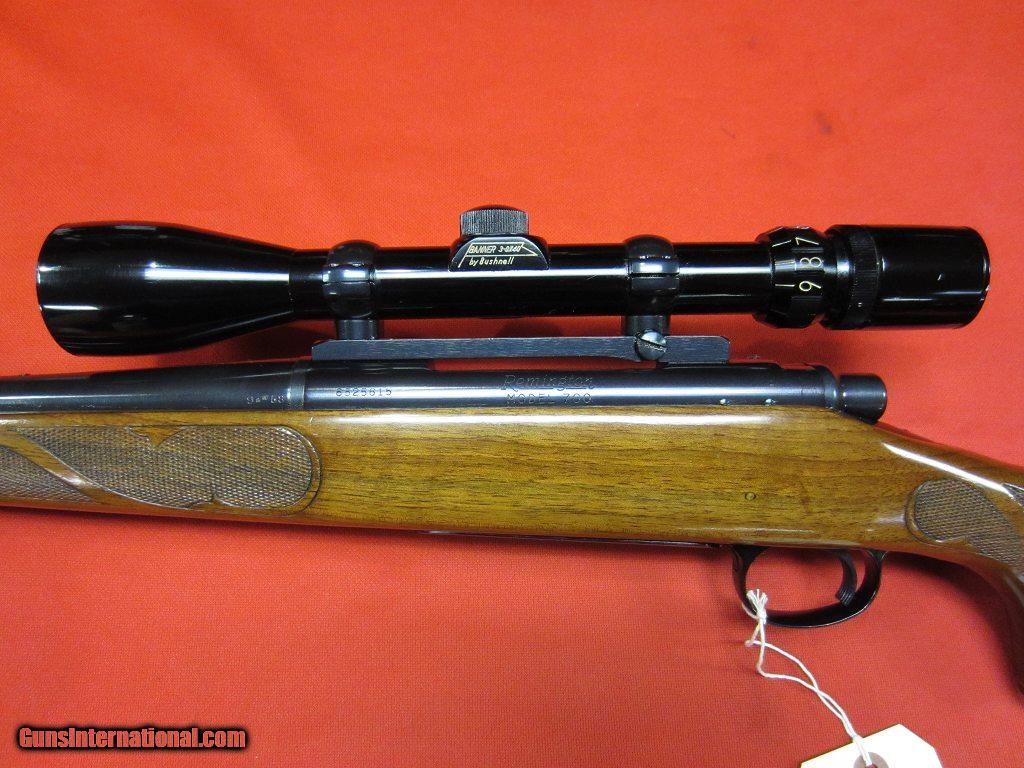 Description: Remington Model 700BDL 300 Winchester 24" w/ Bushnell Banner 3-9X -- Older model 700 BDL with press checkered stock and Bushnell Banner 3-9X scope on Redfield rings and bases. The factory iron sights have been removed. Very good condition overall. SOLD |