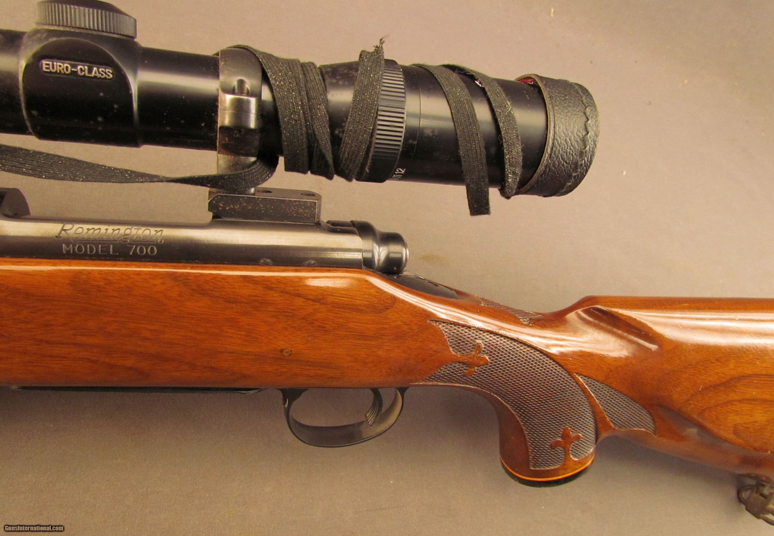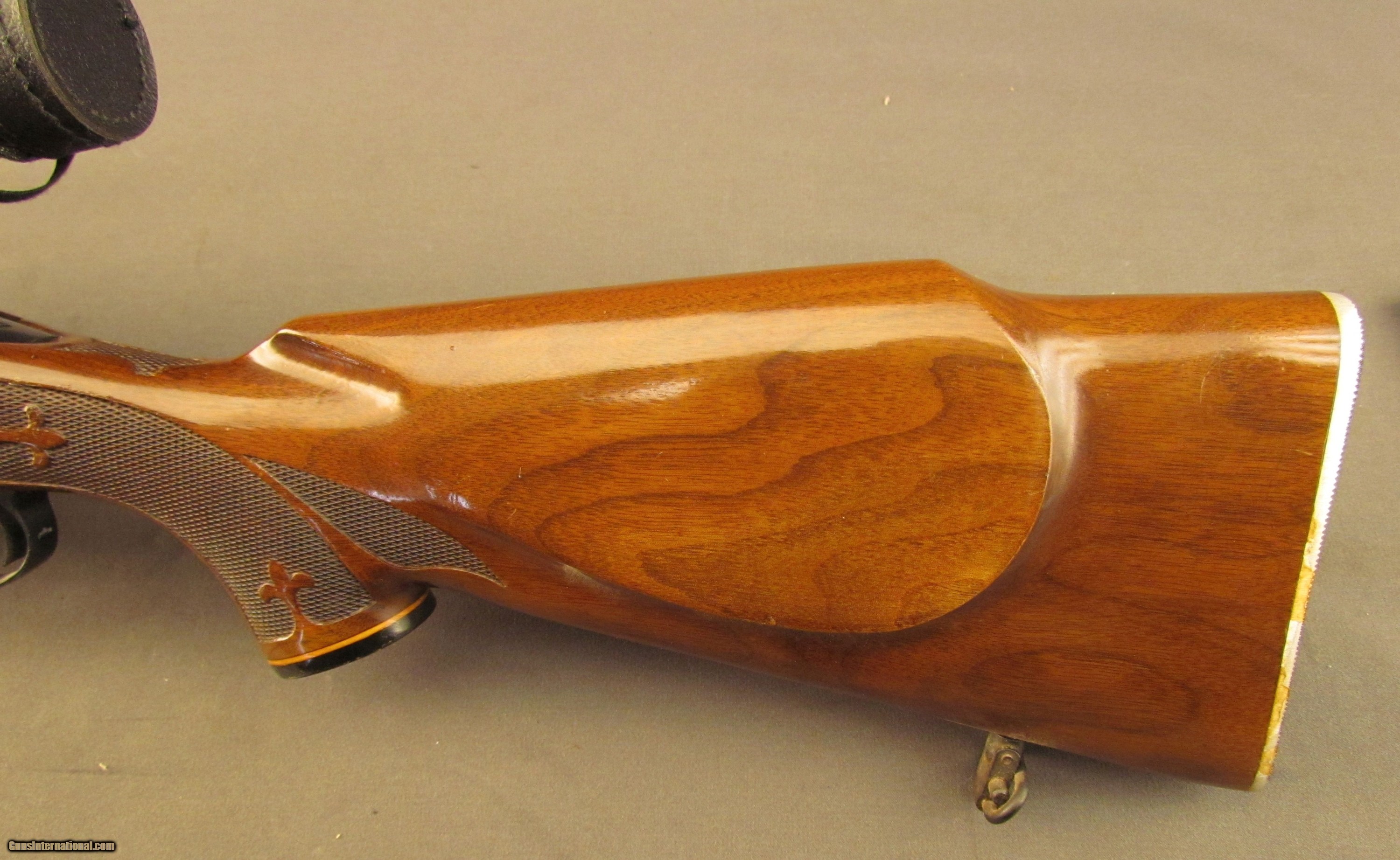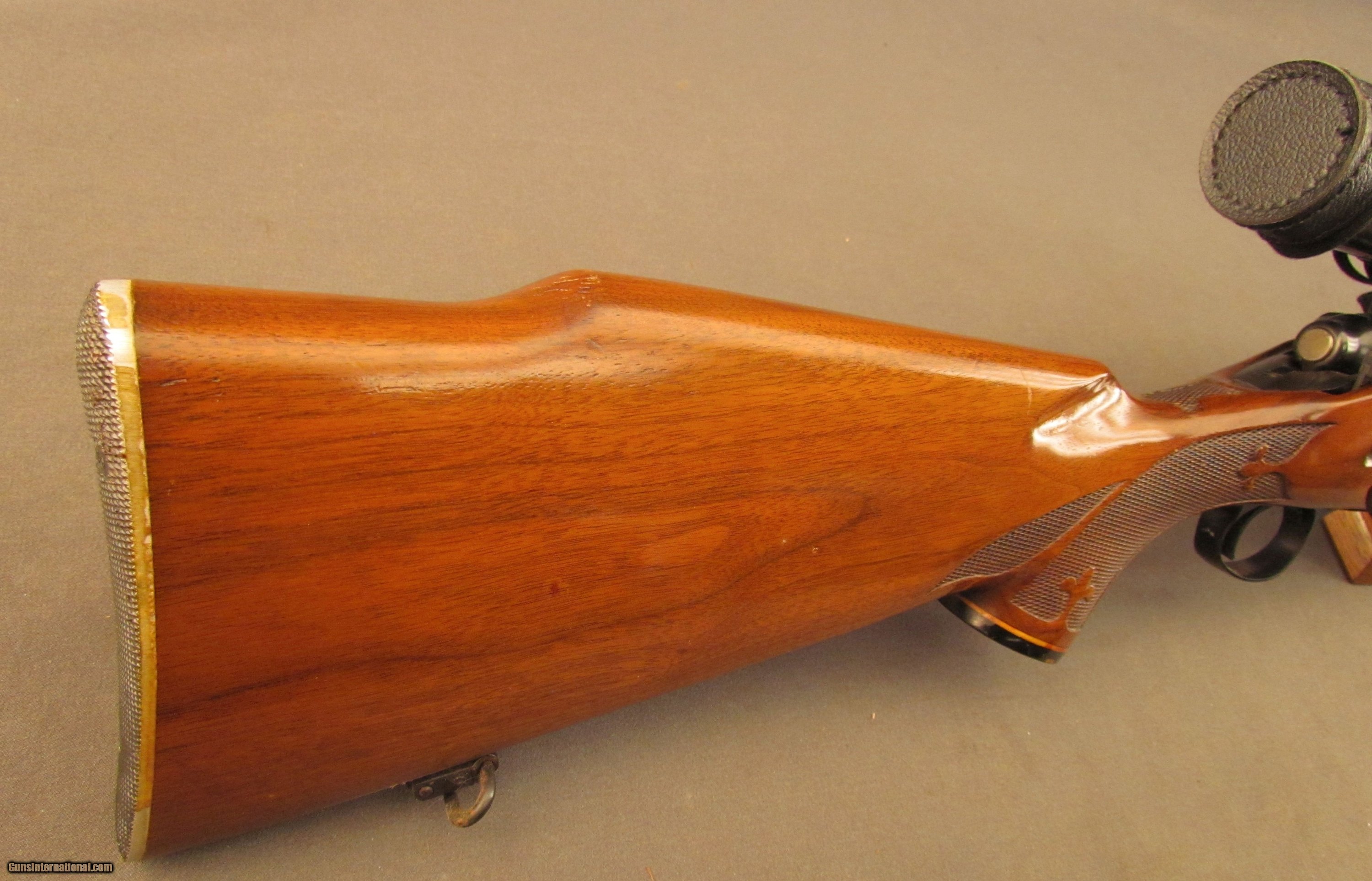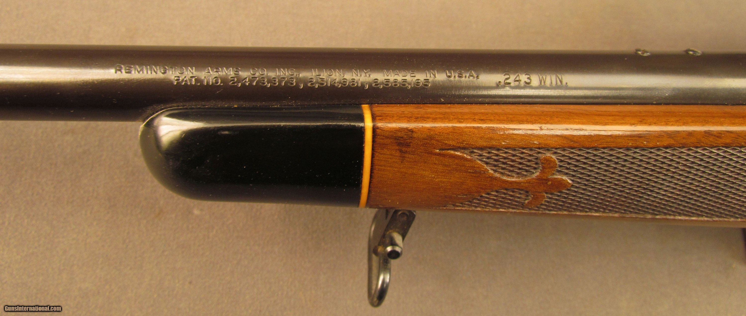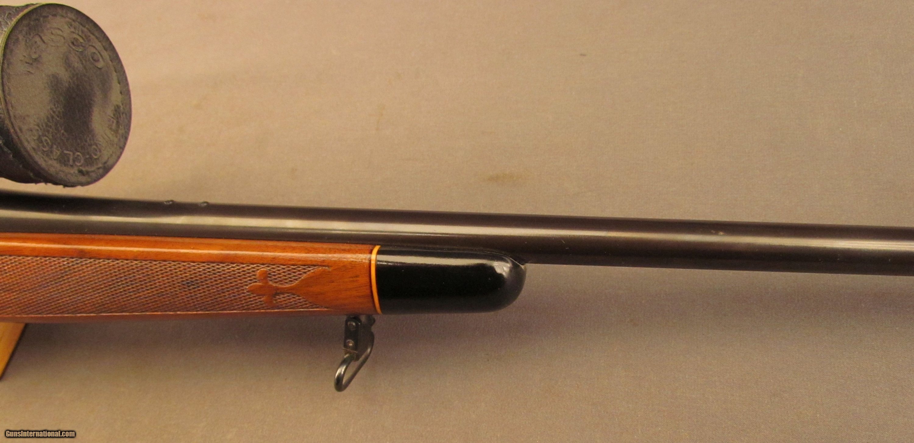 Description: Serial #118443, .243 Win., 20 1/2" barrel with an excellent, bright bore. This is a pre-'64 short action rifle with the standard 20" barrel (made from 1962 – 1963; 22" in 1964). The rifle retains 95-97% of the original blue finish with just a few minor spots of silvering at the muzzle and a couple of the high edges. The pistol-grip stock is likewise in excellent condition with only some scattered handling marks and minor blemishes marring the original satin varnish finish. The rifle is equipped with the factory iron sights, QD sling swivels, and has a Tasco 3 – 12x 52 scope with duplex reticle installed. This is a handy rifle, in a useful medium game chambering, and was only made in this configuration for two years. FFL or C&R SOLD Curio/Relic: Yes Manufacturer: Remington Model: 700 Serial Number: 118443 Caliber Info: .243 Gauge Info: .243 |