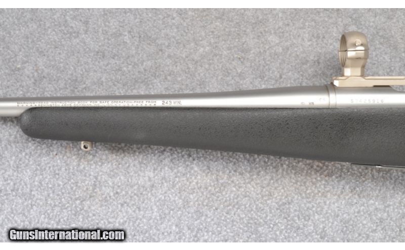 Description: Excellent throughout showing little to no use. Complete with rings and bases. No box. SOLD Manufacturer: S/N S762XXXX Caliber Info: .243 Win. Metal Condition: Excellent Bore Condition: Excellent Barrels: 20 Triggers: Factory Stock: Uncheckered Black Synthetic Pistol Grip Stock Dimensions: 13 1/4" LOP Fore End: Uncheckered Black Synthetic Butt Pad: Black Rubber Weight: 6 1/2 LB Sights: None - Rings & Bases Included Item Location: Wheeling, WV |