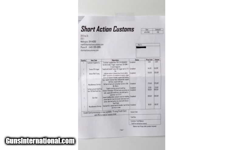 Description: SOLD Caliber Info: .308 Winchester Metal Condition: Very Good Wood Condition: Very Good Bore Condition: Excellent Barrels: 22 Inch Triggers: Single Stock: Fiber Glass Stock Dimensions: 13 5/8 Inch LOP Butt Pad: Rubber Weight: 8 Lbs 4 Oz Sights: Leupold VX-III Long Range Extras: See Build Sheet. Item Location: Tualatin, OR |