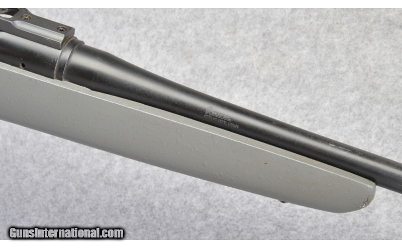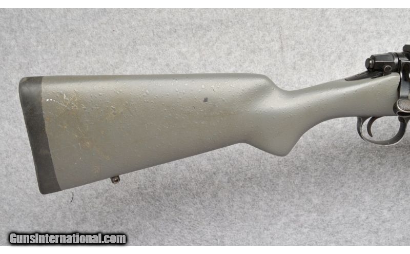 Description: Lightened and blueprinted Remington 700 action, Fluted Bolt, Kevlar stock. Heavy finish wear but shows an excellent bore. SOLD Caliber Info: 300 Weatherby Magnum Metal Condition: Heavy Finish Bore Condition: Bright and Sharp Barrels: 24 1/2 over Muzzle Brake Stock: Ligthweight Synthetic Pistol Grip Stock Dimensions: 13 1/2" LOP Butt Pad: Rifle Inc Recoil Pad Weight: 5 Lbs 8 Ozs Sights: Scope Bases Installed Item Location: Rogers, AR |
