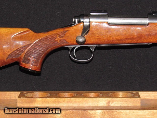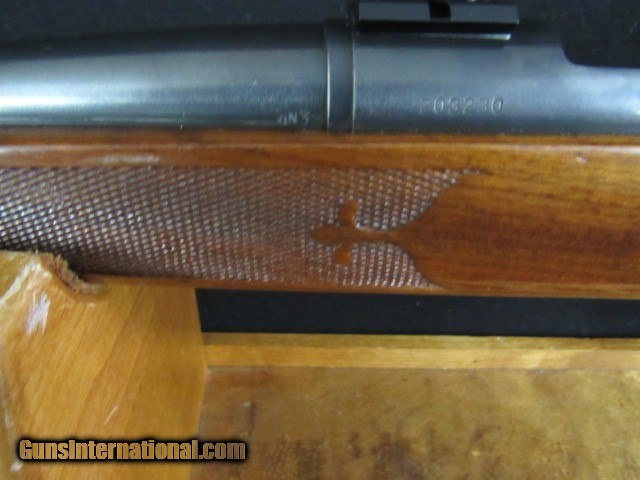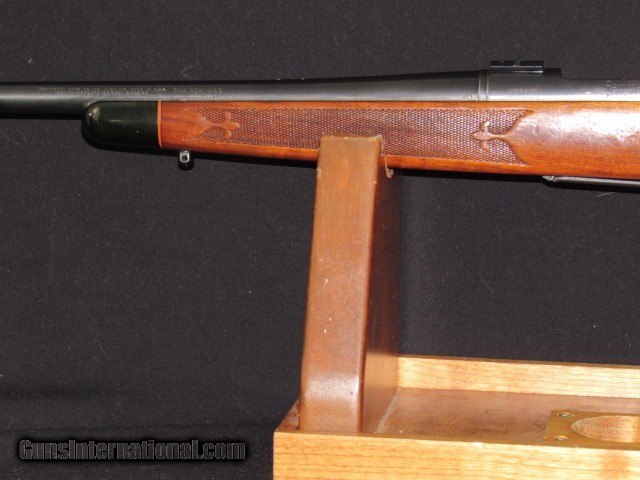 Description: This is a scarce First Series Remington Model 700 BDL bolt action rifle in caliber 7mm Rem Mag that has the 24" Stainless Steel barrel and the really nice fleur-de-lis checkering along with the black fore end and grip cap, both with white line spacers, and factory sling swivel studs. The 24" stainless steel barrel was standard only from 1962 to 1970. This one has a "ON" date code for July 1966 and thus qualifies as a Curio & Relic (at least 50 years old and having features no longer produced/collector value). Weaver style scope base are installed and the factory holes for the front and rear sights are plugged with the correct screws. 4 shot total capability. CONDITION: All the blued surfaces retain 95% original blue with some very light scratches from use. All markings are clear. Stock is in great shape with no extra holes, never sanded or refinished. The factory butt plate has been replaced by a professionally installed Pachmyr rubber butt pad. Length of pull measures about 13 5/8" so I don't believe the stock was cut for installation (the original butt plate was a vented rubber style similar in thickness to the Pachmyr that's installed). Excellent bright shiny bore. Crisp action with properly functioning safety and floor plate release. Grades NRA Modern Excellent. With the Remington factory in Ilion (about 45 minutes from my house) permanently closed, these older Remington firearms are quickly going up in value and becoming collectors prizes, so don't miss out on this piece of American gun-making history! TERMS: No international sales. Must ship to FFL or C&R license holder (sales within New York State require FFL only). Please be aware of what is legal in your state. 3 day non-firing inspection. Not warranted safe to fire until checked out by a competent gunsmith. Buyer pays return shipping. Payment by bank check, personal check or money order. All major credit cards accepted with 4% convenience fee added. Ships by UPS Ground with tracking. Always interested in used long guns and used antique handguns so please contact me if you have anything for sale or trade. 315.251.4799 with questions or concerns. FREE SHIPPING! SOLD Curio/Relic: Yes Rifle Caliber: 7mm Remington Magnum Manufacturer: Remington Model: 700 BDL Serial Number: 20323024 Barrel Length: 24" round Condition: Excellent Metal Condition: Excellent Wood Condition: Excellent Bore Condition: Excellent Barrel Type: Stainless Steel Action: Bolt Triggers: Standard/plain Stock: Walnut Butt Pad: Rubber Manufacture Date: 1966 Item Location: New York |