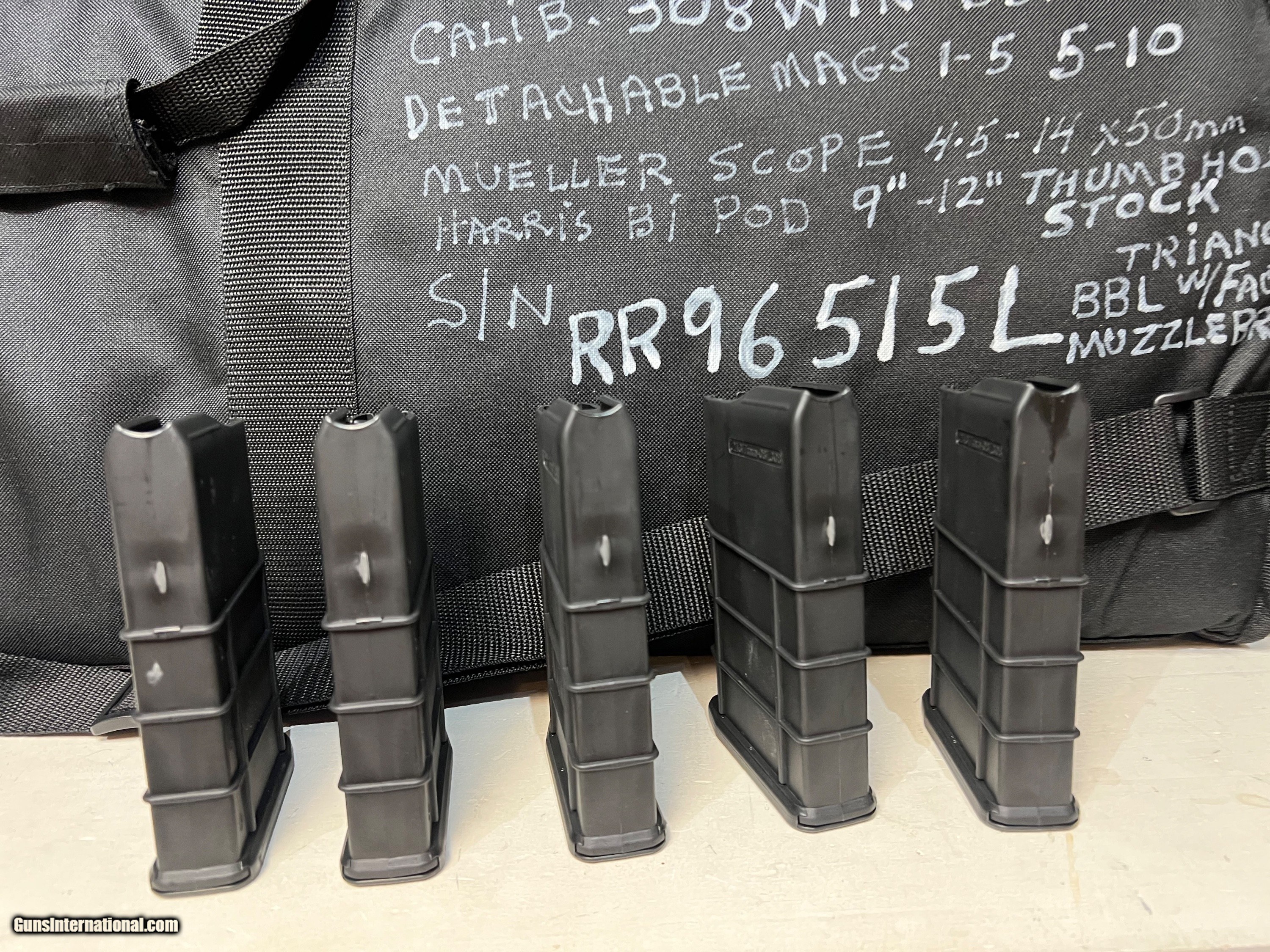 22" bbl scope muzzle break, bi-pod 6 mags spare trigger group very good condition