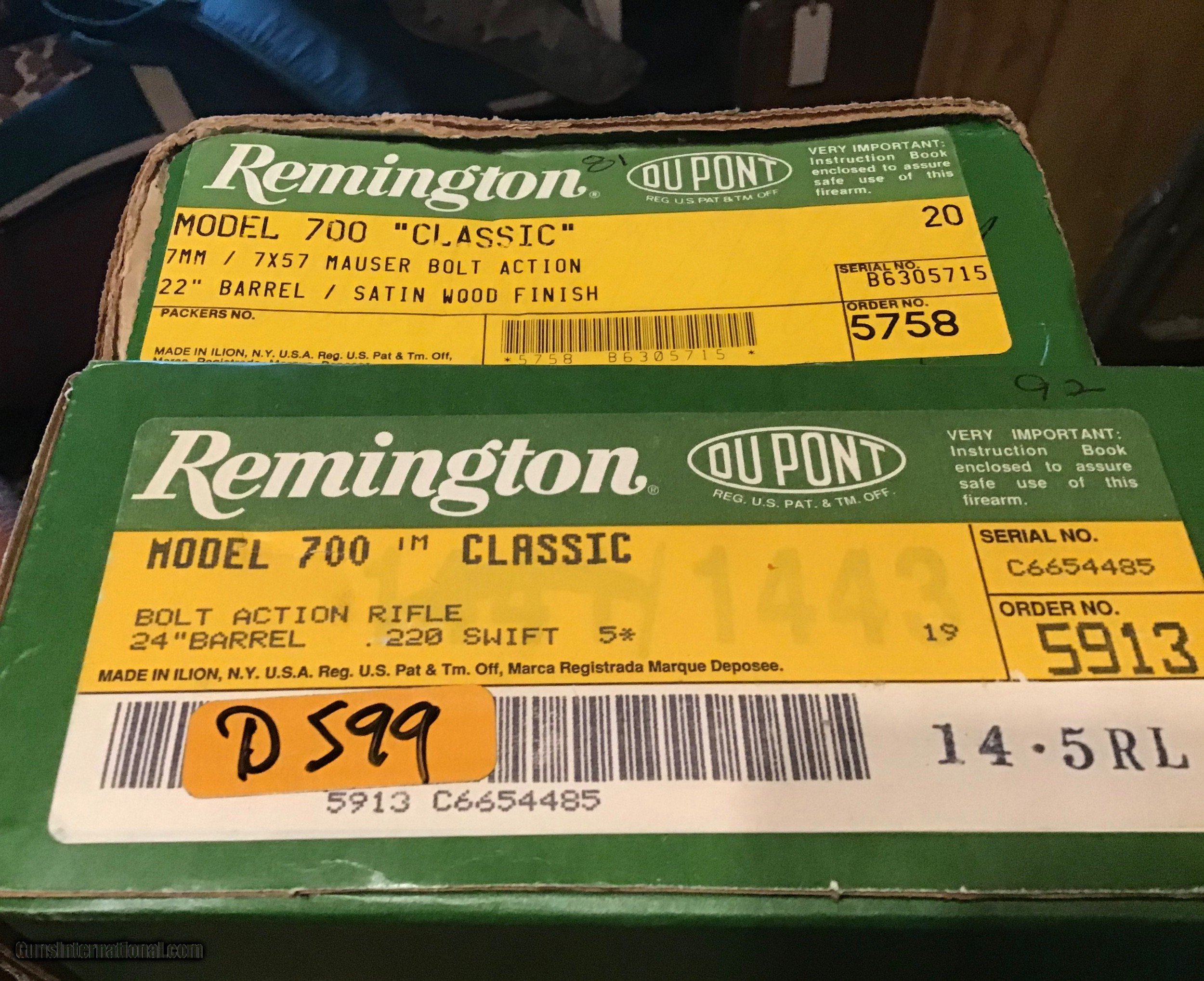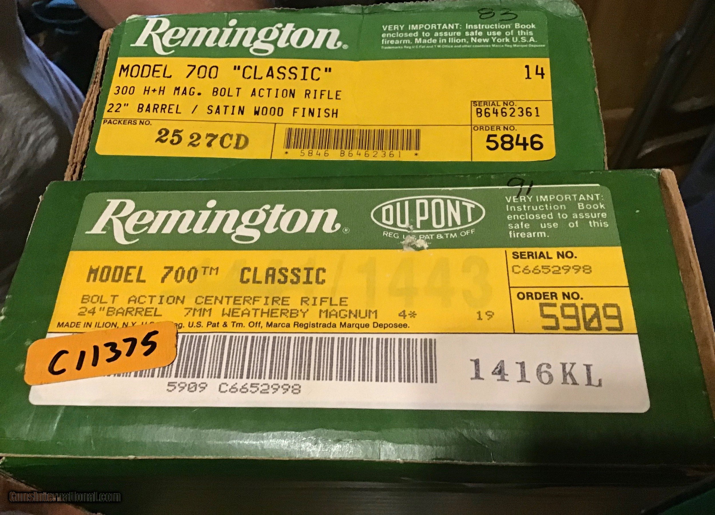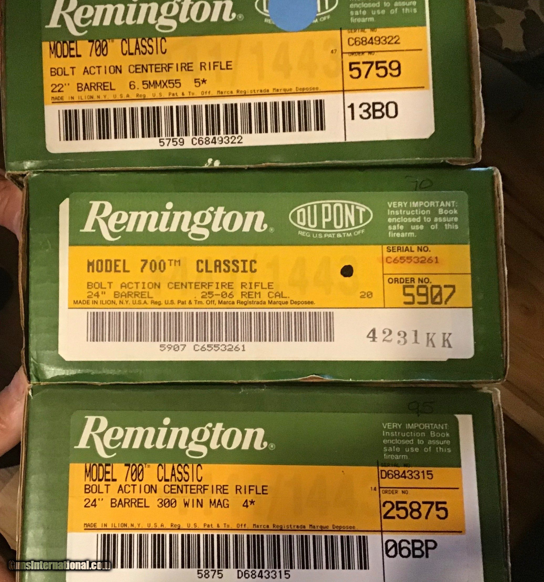 WE JUST ACQUIRED AN ENTIRE SET OF 25, EVERY CALIBER REMINGTON 700 CLASSIC RIFLES MADE FROM 1981TO 2001, GUNS HAVE NEVER BEEN ASSEMBELLED ARE ALL NIB.