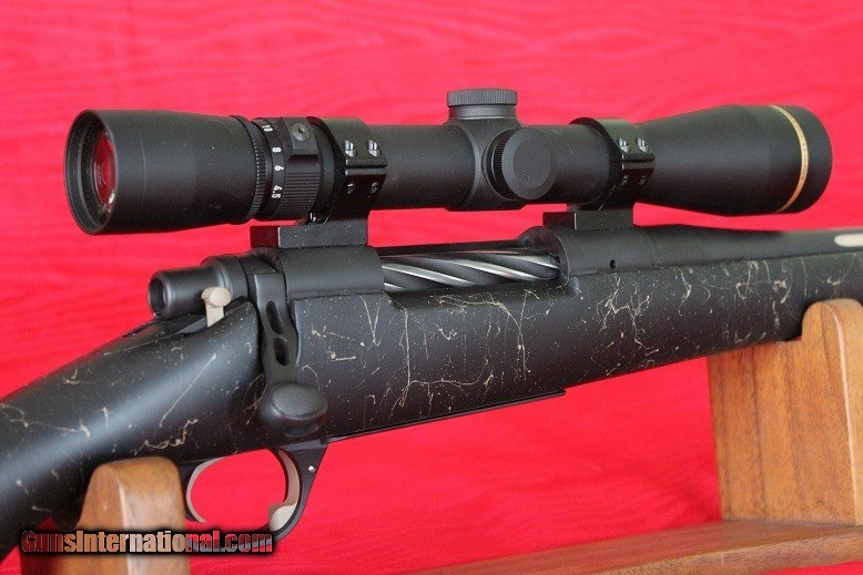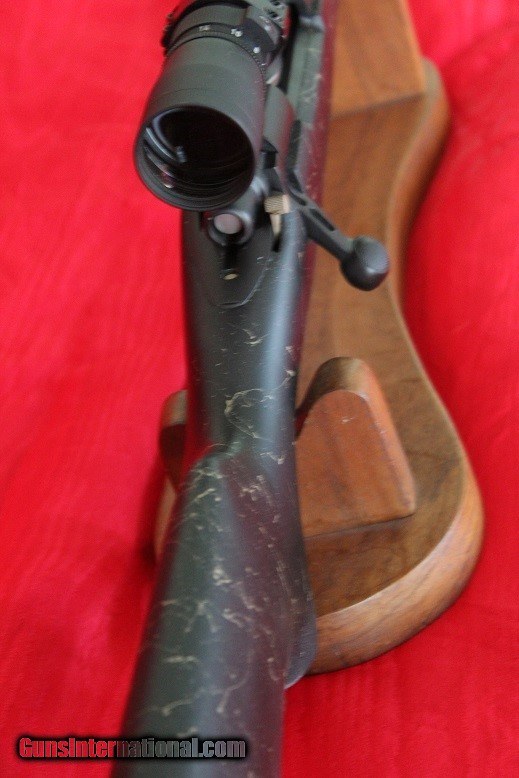 Description: Weaver Rifles custom 300 Winchester Light weight rifle. Weights 7lbs 2 ozs with Leupold 4.5x14 scope. Built on a blur printed Remington 700 action SN: RR02420M. Has a spiral fluted bolt, skeletonized bolt handle and a Sako extractor. Douglas #3 contour 10 twist barrel finished 24” plus muzzle brake. High Tech Synthetic stock 13 5/8” LOP. Painted black with tan webbing. All metal parts ceramic coated black with tan accents. $3800.00 with scope plus shipping. SOLD |