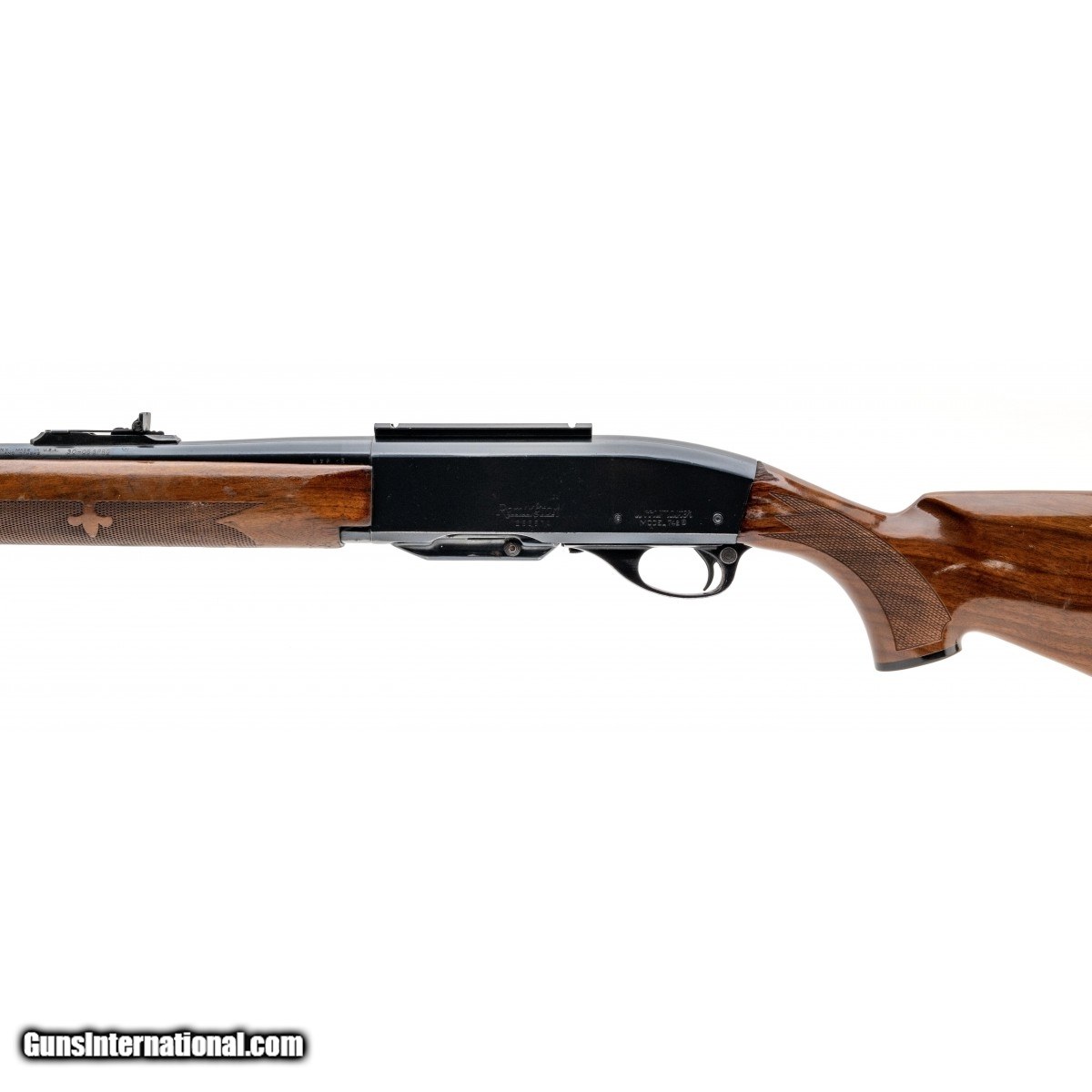Description: " SN: 255574. Circa 1966. Chambered in .30-06 Springfield with a 22"" barrel, bore is excellent. Field semi automatic rifle with blued receiver-barrel, bead front sight, adjustable rear sight, weaver optic mount and glossy walnut stock. Overall condition is vey good with hunting wear on wood. SOLD |