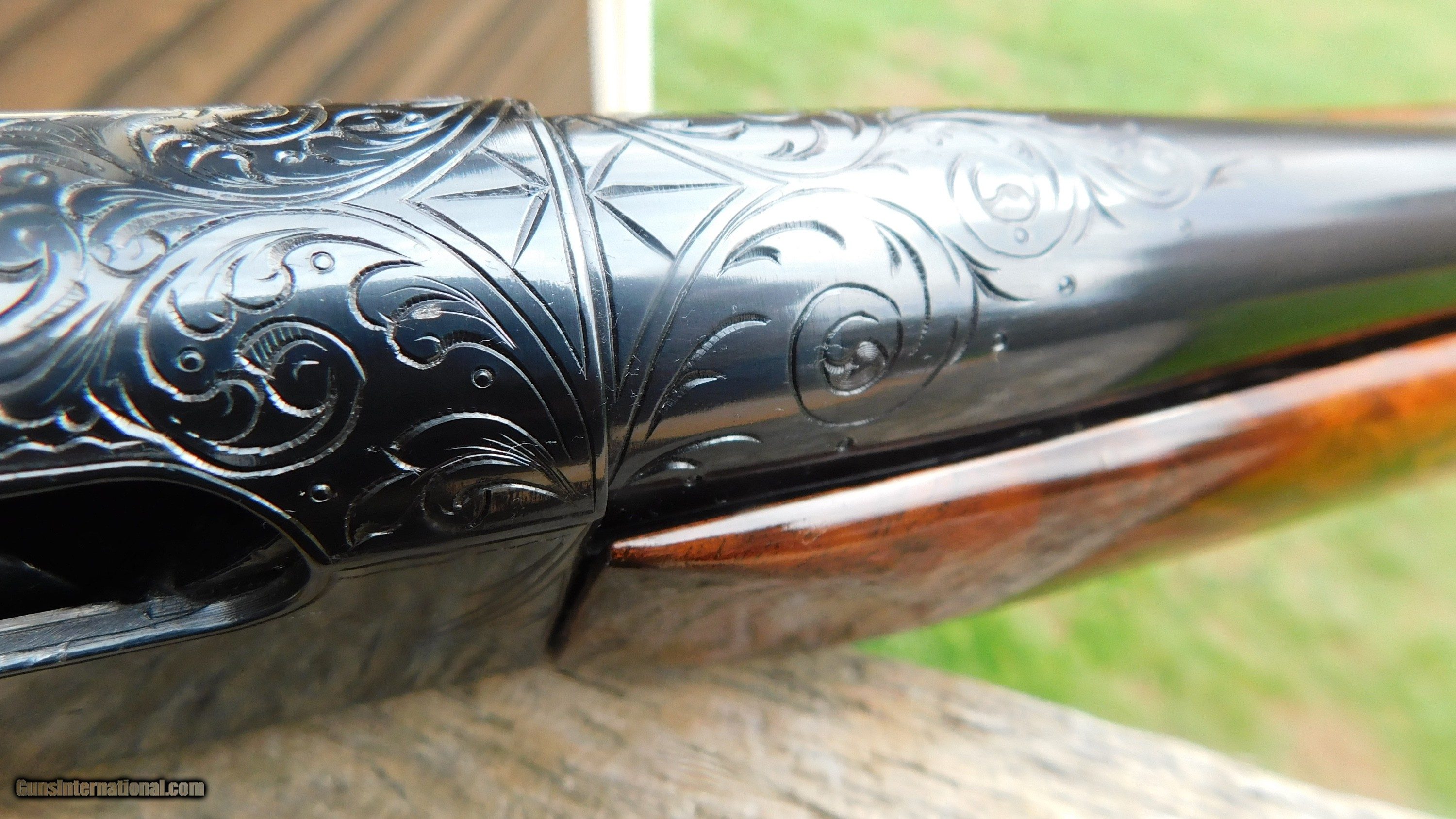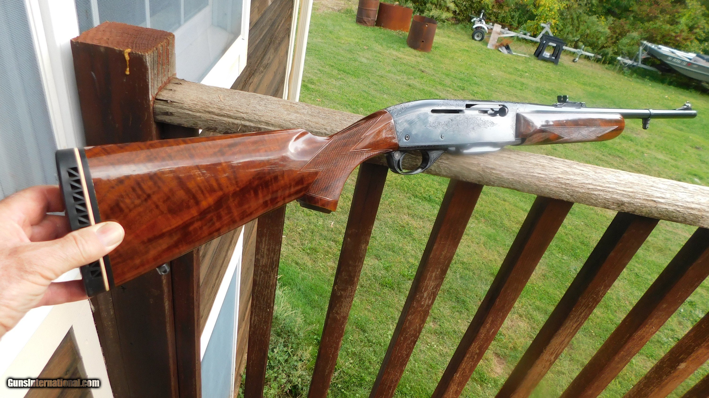 Description: SALE PENDING WALT NY ON HOLD TILL JAN ALL OF THE FOLLOWING IS BELIEVED TO BE ACCURATE: OF ALL OF THE APPROX 1.4 MILLION 742's PRODUCED ONLY 75 WERE HIGH GRADE FACTORY ENGRAVED DELUXE IN EITHER D GRADE (PEERLESS WHICH IS THIS GUN) OR F (PREMIER....THIS BEING ONE OF THE 75 AND BELIVED TO BE THE ONLY ONE CHAMBERED IN 6MM IN THIS (D) GRADE OF THE 30 HIGH GRADE REM CUSTOM SHOP FACTORY ENGRAVED 742's DOCUMENTED IN MYSZKOWSKIS BOOT (P 75) ONLY 2 (TWO) WERE CHAMBERED IS 6MM...ONE OF WHICH IS AND F AND THE OTHER THIS GUN IN D THE RICH DARK DEEPLY FIGURED WOOD IS STUNNING, THE HANDSOME CUSTOM SHOP HAND ENGRAVING COVERS THE RIGHT AND LEFT SIDE OF THE RECEIVERS, TOP OF THE BARREL, STEEL FOREND CAP, TRIGGER GUARD AS WELL AS THE MAGAZINE WHICH IS ALSO MARKED 6MM. LOP TO END OF THE PAD (PAD WAS ADDED AT THE FACTORY AS IS INDICATED IN THE PIC OF THE GUN ON P 79 OF THE BOOK REFERENCED ABOVE IS APPROX 12 3/4 AND IS SUPPORTED BY FACTORY RECORDS WHICH WE HAVE SHIPPING IS 100.00 INSURED IN A HARD CASE. IF IT DOES NOT SAY ."SALE PENDING, UNDER DEPOSIT or ON HOLD"...IT IS AVAILABLE. WE DO NOT REPLY TO INQUIRIES THAT SAY "INTERESTED IN THIS GUN" OR "IS IT AVAILABLE" IF YOU WOULD LIKE TO BUY THIS OR ANY OF OUR GUNS WE SUGGEST YOU PHONE US; WE ARE OFTEN AVAIALABLE LONG HOURS. IF YOU ARE INTERSTED IN A GUN THAT IS UNDER DEPOSIT AND WOULD LIKE TO BE NOTIFIED IF A SIMILAR GUN COMES IN DROP US A LINE AND WE WILL MAKE EFFORTS TO CONTACT YOU WHEN ONE DOES COME IN. WE HAVE OVER 2000 SALES ON ALL SITES WITH AN A+ RATING ON ALL WE ALSO KEEP AN INVENTORY OF OLDER PERIOD CORRECT SCOPES; CALL WITH NEEDS WE MOSTLY PICK VERY CLEAN AND LIGHLTY USED GUNS. WE ARE HAPPY TO TAKE CONSIGNMENT GUNS AND COLLECTIONS OR WILL BUY YOURS OUTRIGHT. WE SOMETIMES ARE EMPLOYED FOR ESTATE PURPOSES AND VALUATIONS. AT THIS TIME WE ARE ONLY ACCEPTING US POSTAL MONEY ORDERS OR BANK CHECKS FOR PAYMENT IT IS THE BUYERS RESPONSIBILITY TO GET US A COPY OF YOUR RECEIVING FFL'S LIC AND A COPY OF YOUR PHOTO ID BEFORE THE GUN SHIPS YOU MUST CALL OR CONTACT YOUR FFL.WE DO NOT CALL FOR YOU UNLESS THEY RQUIRE IT. LAYAWAY PURCHASES NOT COMPLETED ON ANY RETURNED ITEM UNLESS NOT AS DESCRIBED OR DAMAGED ARE SUBJECT TO A 10% RELISTING/RESTOCKING FEE AND MUST BE RETURNED WITH NO NEW MARKS OR SCRATCHES, SENT BACK INSURED, PRIORITY SIGNATURE REQUIRED. ALL INFORMATION CONTAINED HEREIN IS BELIEVED TO BE ACCURATE BUT IS NOT GUARANTEED. WITH ANY OLDER OR USED GUN IT SHOULD BE INSPECTED BY A GUNSMITH PRIOR TO SHOOTING. SOLD |