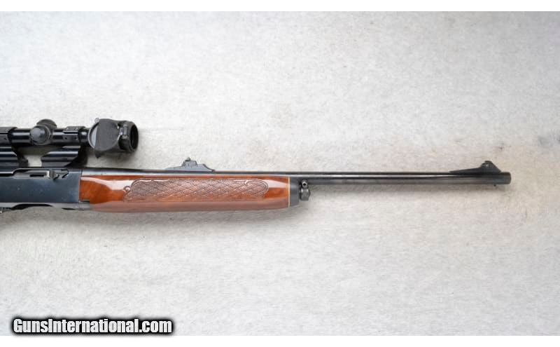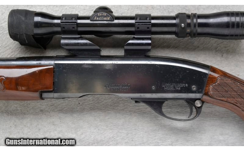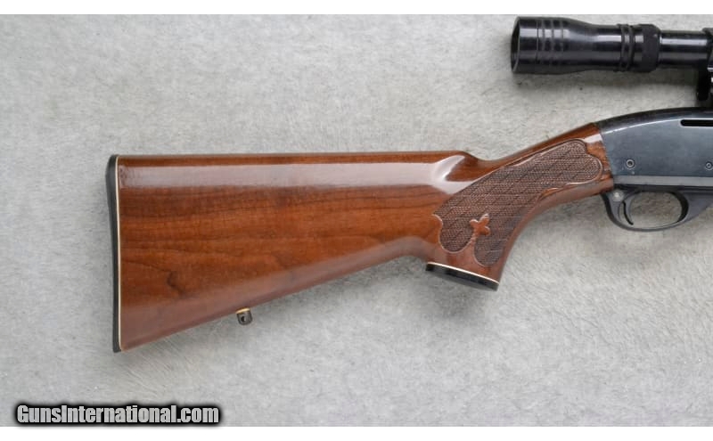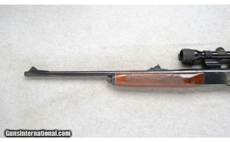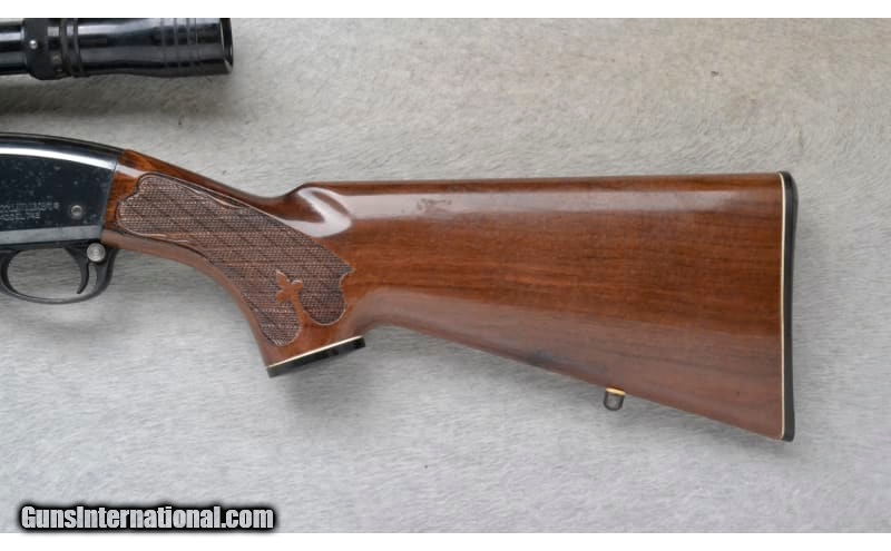 Description: This Remington Model Woodsmaster is a right hand semi-auto rifle in .30-06 Sprg. Cal. It has a 22 inch barrel. A raised blade front sight and an adjustable notch middle sight. It is outfitted with a Redfield Scope on a see through mount. The butt stock is a checkered grip walnut pistol grip with a black cap. The forearm is a checkered grip walnut with a black cap. .30-06 Springfield SOLD Chambers: Detachable Magazine. Metal Condition: Poor. A lot of surface blemishes and freckling. Wood Condition: Good. Has some minor handling marks. Bore Condition: Very Good. Barrels: 22 inch. Stock Dimensions: LOP 13 1/4 inches. Fore End: Checkered grip walnut with a black cap. Butt Pad: Remington checkered black plate. Weight: 8 lb. 4 oz. Sights: Raised blade front. Adjustable notch middle. Redfield 2x-7x Scope on a see through mount. Item Location: Richfield, WI |