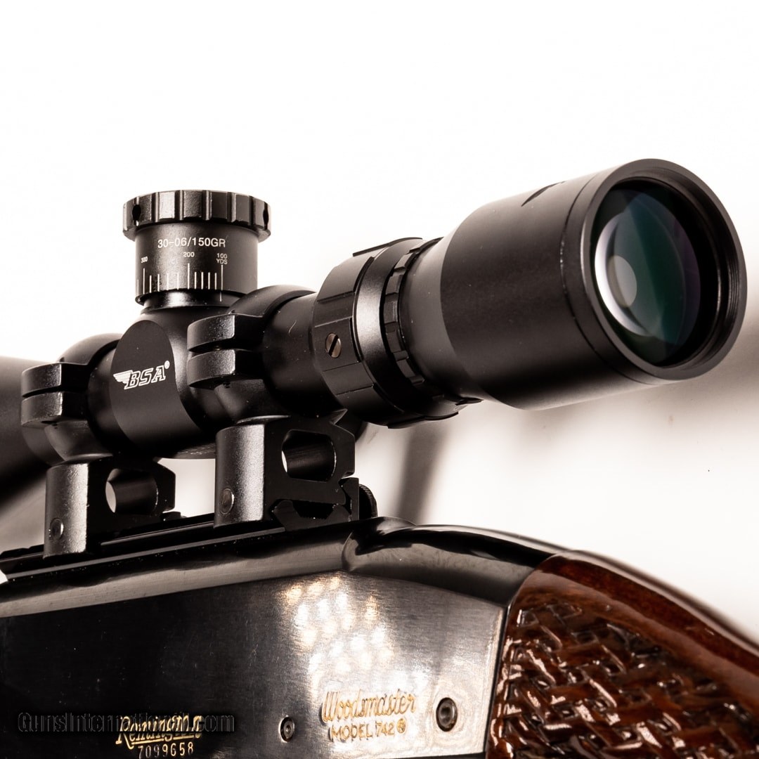 Description: Guns Listing ID: 544923 The Remington Woodmaster Model 742 is a semi-automatic hunting rifle. This model is chambered in 30-06 with a 22\" barrel. It has been equipped with a BSA 4-12X40 AO scope. 1-4 round magazine included. SOLD Manufacturer: REMINGTON Model: 742 WOODSMASTER Caliber Info: .30-06 SPRG Condition: Used - Certified Barrels: 22 BARREL Finish: BLACK |