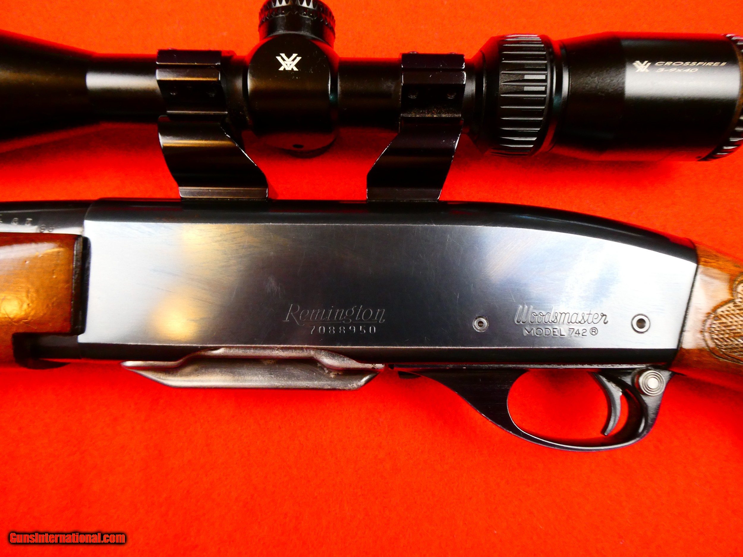 Description: ***SOLD*** Remington Model 742 semi-auto .30-06 Woodsmaster, Made in 1968, 22 inch barrel, Original open sights, Original sling swivels, Ckeckered walnut stock, 4 round Mag, Comes with new Vortex Crossfire II 3-9 x 40 scope and see through mounts, Ser # 70889XX Stamped R, These were made from 1960- 1980, This is a classic rifle in very high condition. Layaway Available Personal Property of David Walters SOLD |