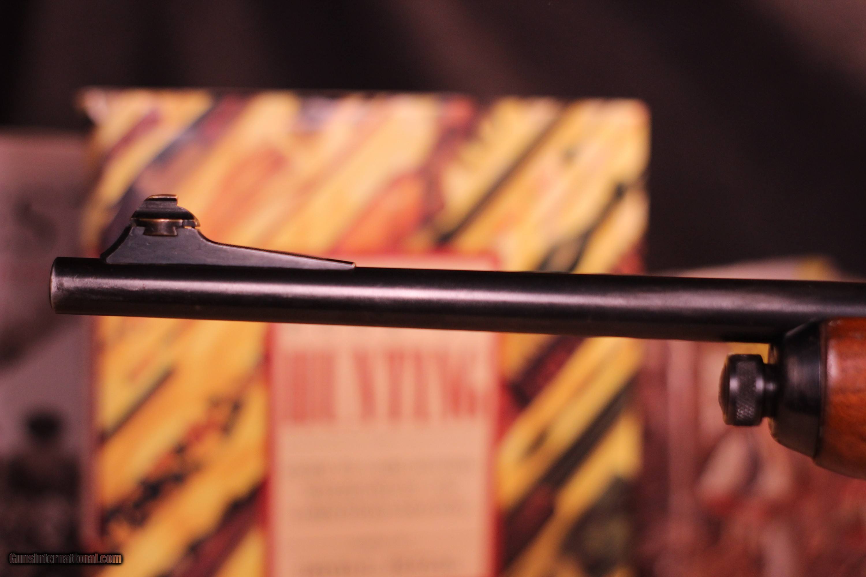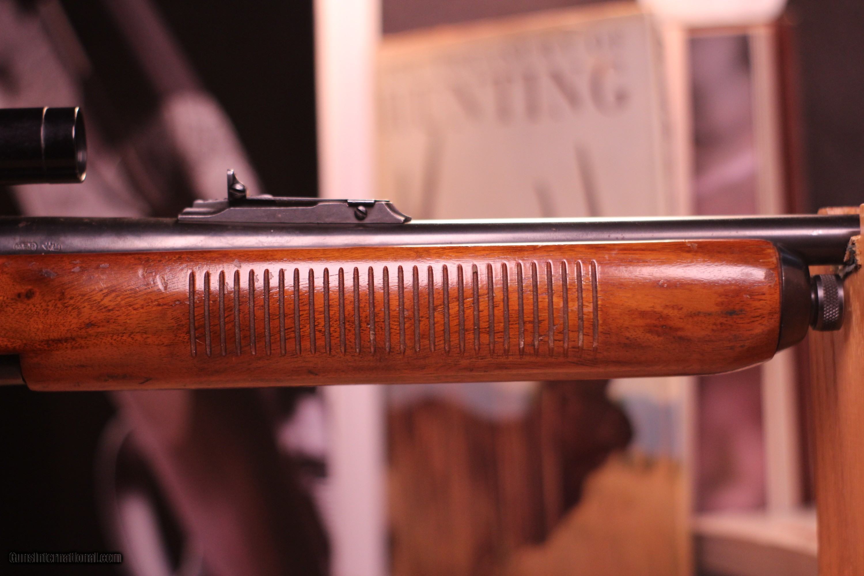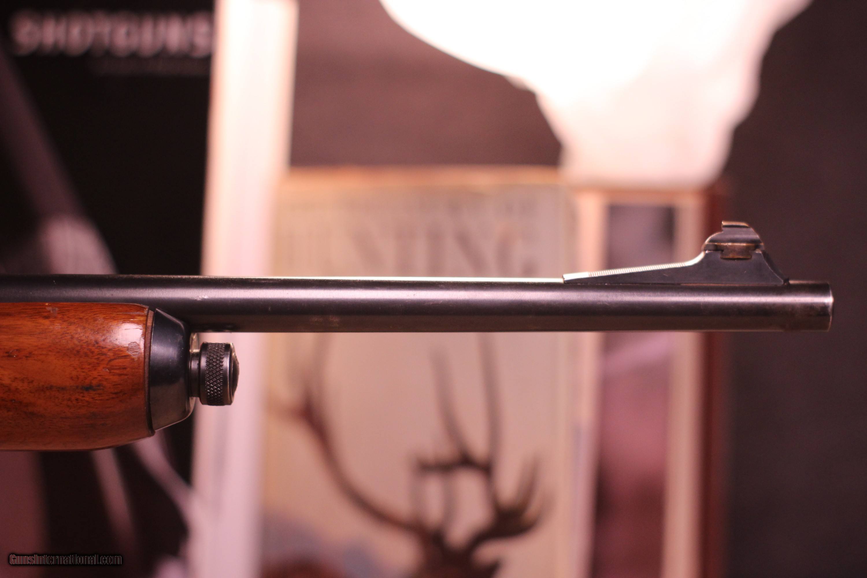 Description: Available now is a 1960s Remington Model 742 Woodsmaster Carbine in .308 Winchester, a superb choice for hunters and collectors alike. This carbine features an 18 1/2-inch barrel with express sights and comes equipped with a Redfield 2 3/4x scope mounted in a swing joint for quick target acquisition. The bore is excellent, with sharp rifling and no pitting, ensuring reliable performance. The rifle retains 90-95% of its factory bluing, with minimal wear, and the walnut stock holds 80-85% of its original finish, complemented by a Remington butt plate. Weighing 8 pounds 5 ounces, this well-balanced rifle is perfect for navigating dense woods. Priced at $795.00. SOLD |