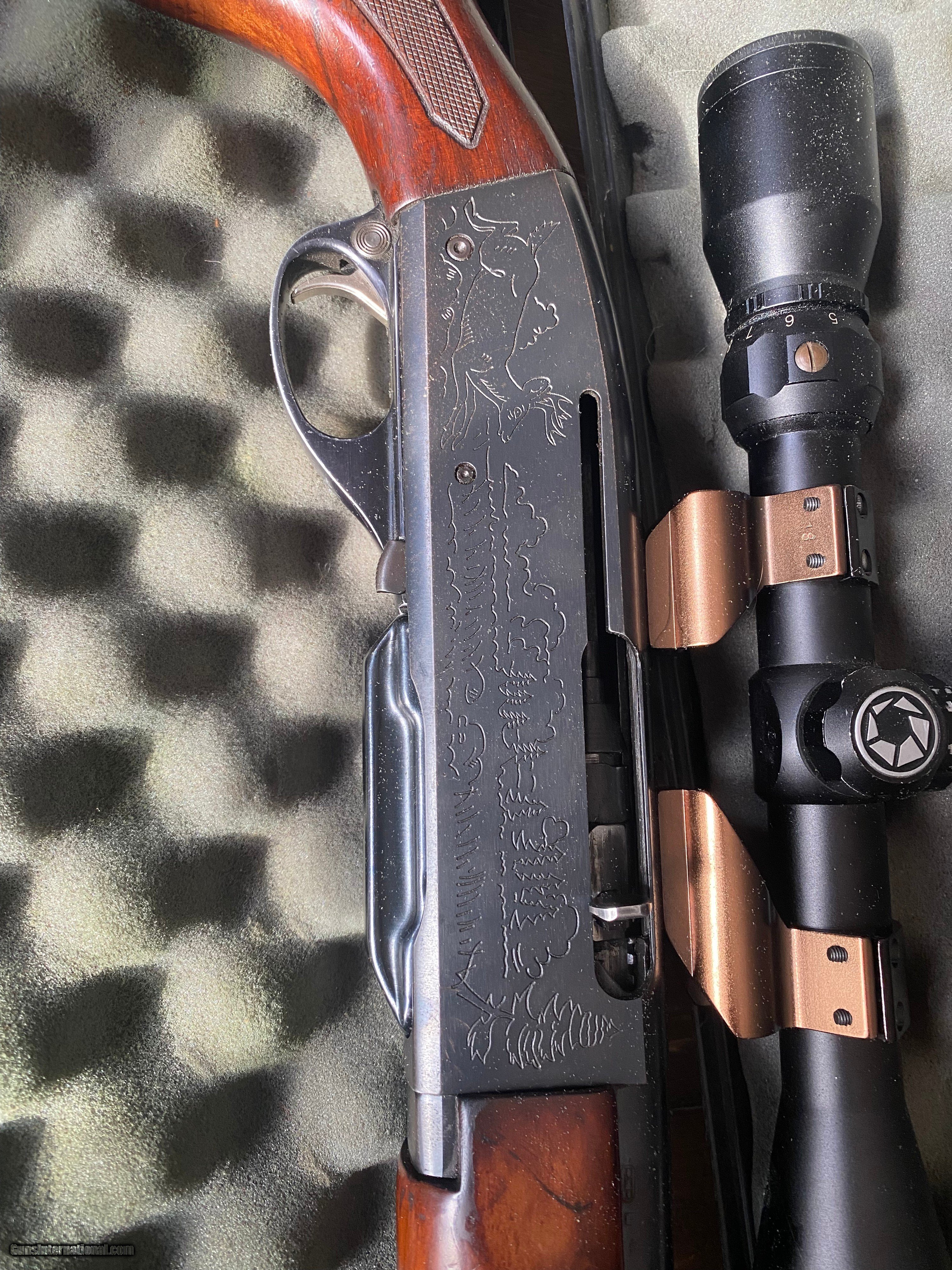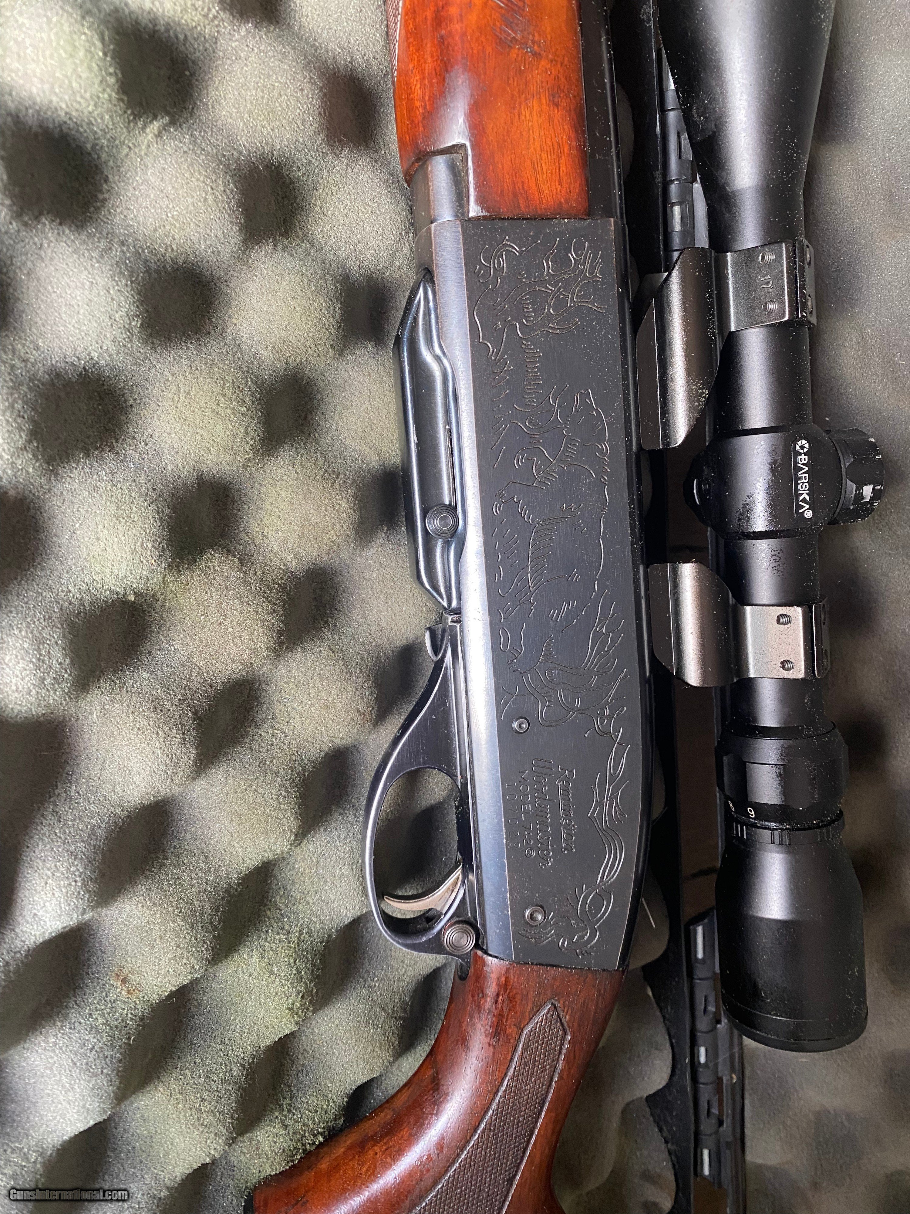 Description: Remington Rifle Model 742; 30-06 ; Used Deer Rifle in good shape. If shipped through FFL dealer andd $25.00 for shipping cost. If your deal will accept guns from a non FFL there will be no extra charge. SOLD Rifle Caliber: .30-06 Springfield Manufacturer: Remington Model: 742 Barrel Length: 22 in Bore: 30-06 Chambers: Auto Condition: Good Metal Condition: Good Wood Condition: Good Bore Condition: Great Barrel Type: Grooved Action: Auto Triggers: single Stock: Wood Fore End: Checkered Butt Pad: Factory Finish: Good Sights: Open & Scope Manufacture Date: 1969 Engraving: Yes; See Photos Item Location: Michigan |