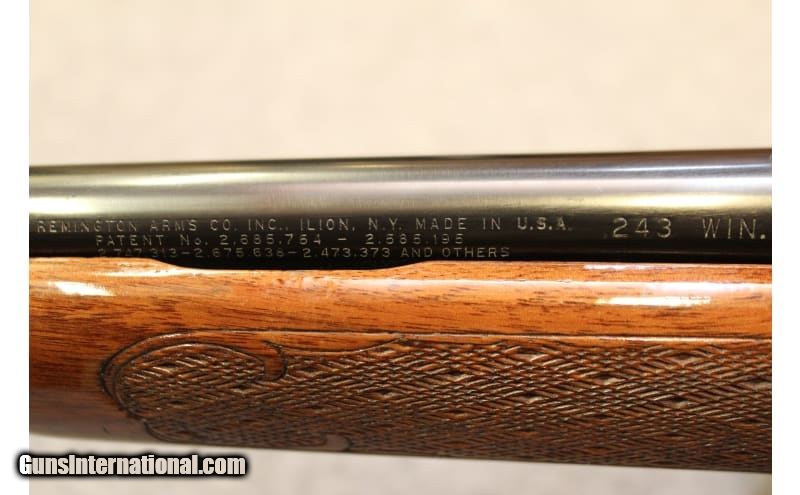 Description: This Remington Woodmaster 742 chambered in .243 Win features, excellent blue surface finish, wood is in excellent shape as well with very minor handling marks, and does have drilled and tapped barrel for iron sights. .243 Winchester SOLD Metal Condition: Excellent Wood Condition: Excellent Bore Condition: Bright Barrels: 22 Weight: 8.4 lbs. Item Location: Hoffman Estates, IL |