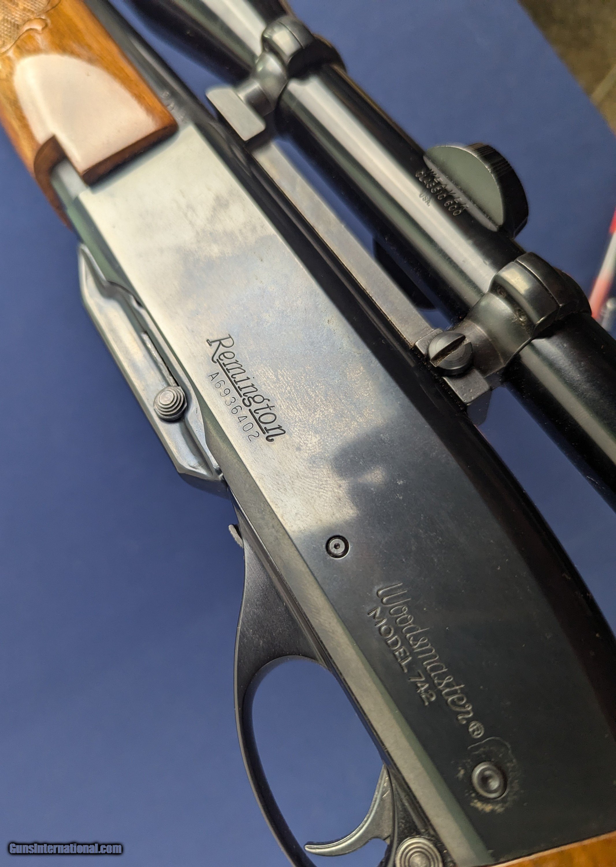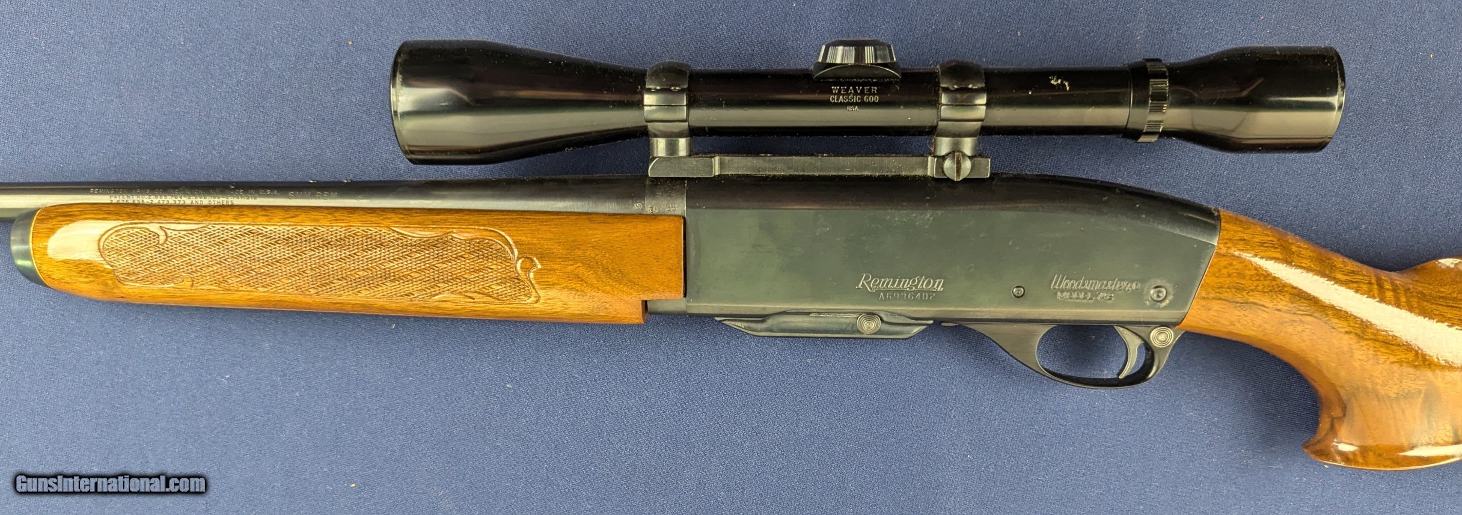 Description: Superb Remington 742 Deluxe Woodmaster 6MM Rifle Just acquired is this very fine and DELUXE Model 742 Remington Woodmaster 6MM rifle. This specimen is all original with 22” barrel. The deluxe treatment includes Hi-Gloss checkered pistol grip stock and forearm, select nicely figured walnut stock. The rifle retains all of its blued finish and the stock near perfect accept for a couple of minute storage marks. It comes equipped with a fine Weaver Classic 600 scope and Weaver mounts. SN A6936402 the rifle has just some oil residue which we will clean before shipping. 99%+ condition. An extremely desirable version of the 742 for the collector or shooting enthusiast . J247 Please note Hansen & Hansen terms and payment policy BEFORE YOU BID. WE DO NOT HAVE AUTOMATIC CHECKOUT on AS WELL AS PAYMENT ONLINE and winning must contact us by phone directly or email ONLY to that posted on final invoice, after FINAL INVOICE IS POSTED ONLINE showing shipping, and handling, taxes (if applicable) . Do not respond to any party with exception of those listed on invoice. UPS shipping based upon dimensional size, weight and value of arms will be approximately $42.00 however final shipping will depend upon geographical area shipped and UPS pricing. Please contact us before if you wish an exact shipping estimate.. We gladly accept money orders, bank checks and personal checks. Credit card orders (VISA AND MASTER CARD ONLY) charged 3.95% additional for use. Please advise by which option you select to use.Also, please view our at hansenguns. Click on "Online Catalog" and see All OF OUR ITEMS LISTED CONSECUTIVELY on or search online on that site with the ID “lope”...... OFFERED ONLINE AND AVAILABLE IN OUR RETAIL GALLERY IN SOUTHPORT, CT. Visit us also on Facebook at ://facebook/hansenguns/?fref=ts. We also own and/or operate Hansen Cartridge Co. and the Ruger Collectors Assc.(RCA). Hansen & Hansen wishes to expedite each order received, however we ship 80-100 items weekly, therefore orders paid by money orders or bank checks are cleared for shipping 5-7 days after deposited funds show in our account. Shipping date is scheduled ONLY AFTER VERIFICATION TAKES PLACE AND FFL/C&R IS RECEIVED (IF APPLIES). This is 5-7 days after WE receive order by mail - NOT customer date mailed and postmarked and after credit card funds are posted. Credit card orders exceeding $500 must be cleared through customer’s bank before shipping. Personal checks are accepted but orders are held UP TO 3 WEEKS after deposit of funds before items released for shipping. IF you have special instructions or require overnight or expedited shipping please advise at time of ordering and we will gladly prioritize shipping FOR AN ADDITIONAL CHARGE. THIS IS OUR POLICY and we encourage s to PLEASE READ AND UNDERSTAND OUR POLICY BEFORE . We would be pleased to answer ANY questions by phone (our toll free number is 1-800-571-7337 or e-mail cwlopiaol. SOLD |
