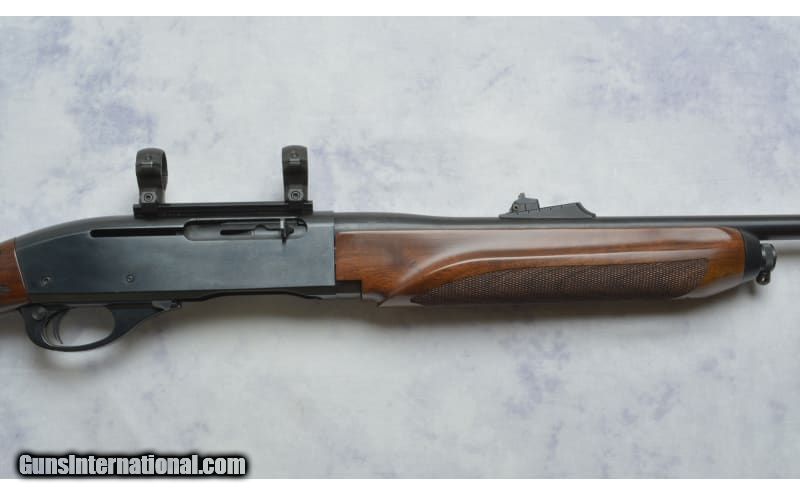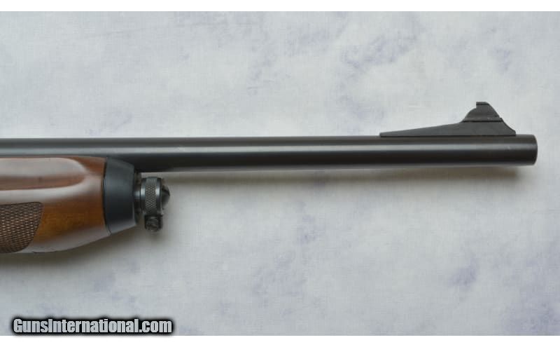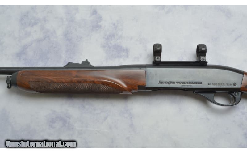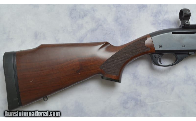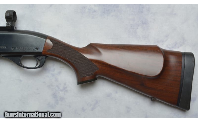 Description: This Remington 750 Woodmaster Carbine features; 18.5" Barrel chambered in .30-06 Springfield, Adjustable Rear Notch and Blade Front Sight, Sling Studs, Weaver Style Scope Base and 1" Rings. Does have handling marks on barrel, stock, and forend. Comes with 2 Magazines. .30-06 Springfield SOLD Chambers: .30-06 Springfield Metal Condition: Very Good Wood Condition: Very Good Bore Condition: Very Good Barrels: 18.5 Sights: Adjustable Rear Notch; Blade Front Sight; Weaver Style Scope Base; 1" Rings Item Location: Green Bay |
