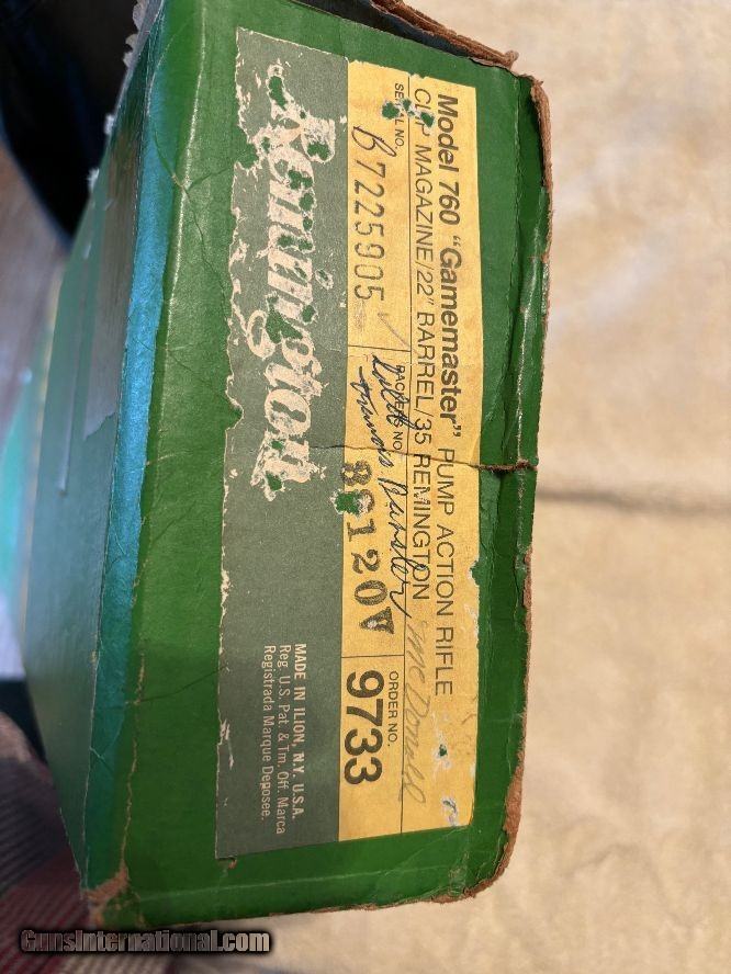 Description: N.I.B. Remington 760 in 35 Remington , Born in 1979, Look closely at the pictures and Call or E-Mail me with any Questions. SOLD Rifle Caliber: .35 Remington Manufacturer: Remington Model: 760 Serial Number: B7225905 Barrel Length: 22 Condition: N.I.B. Metal Condition: New,Excellent Wood Condition: New,Excellent Bore Condition: N.I.B. |