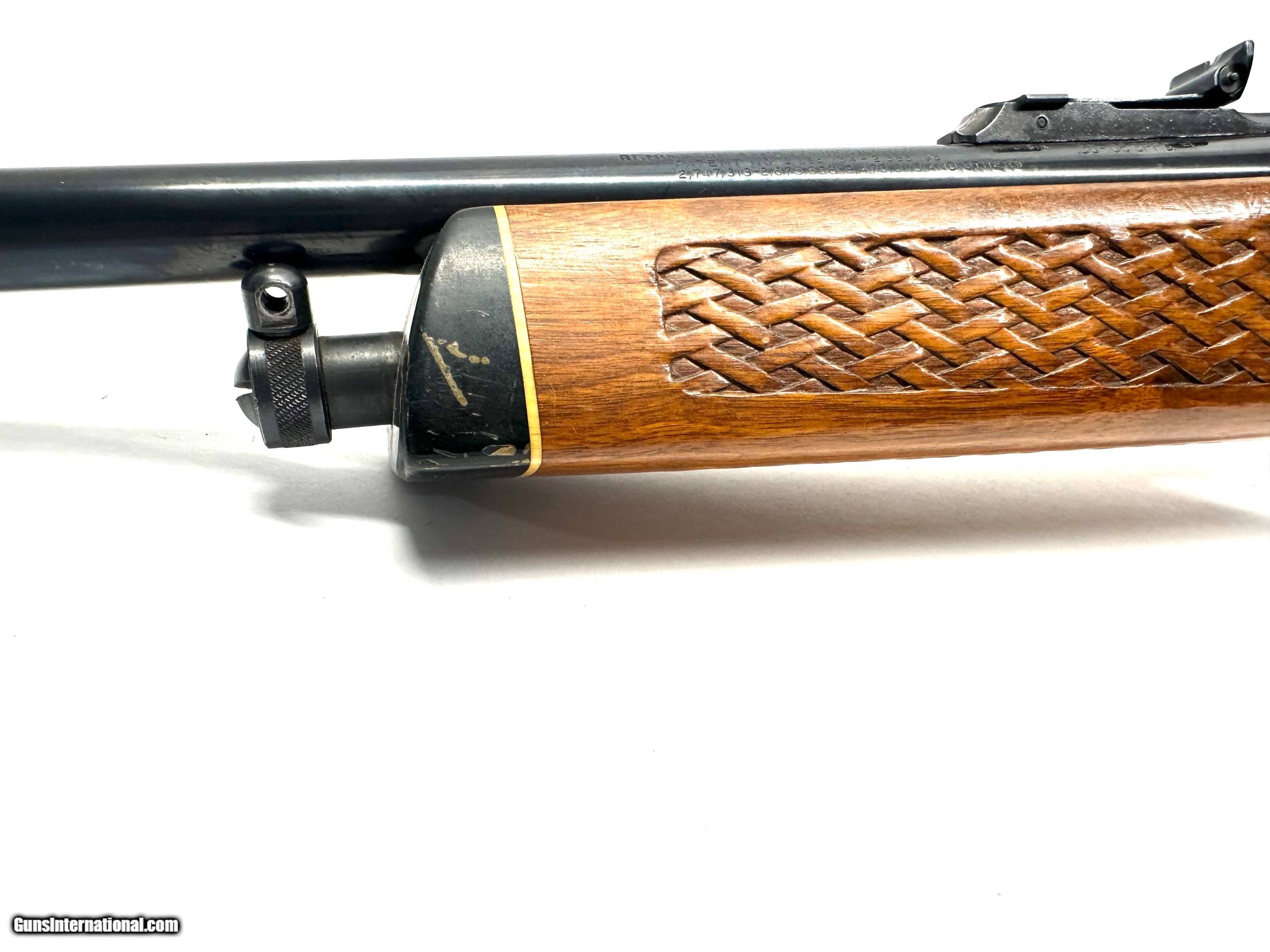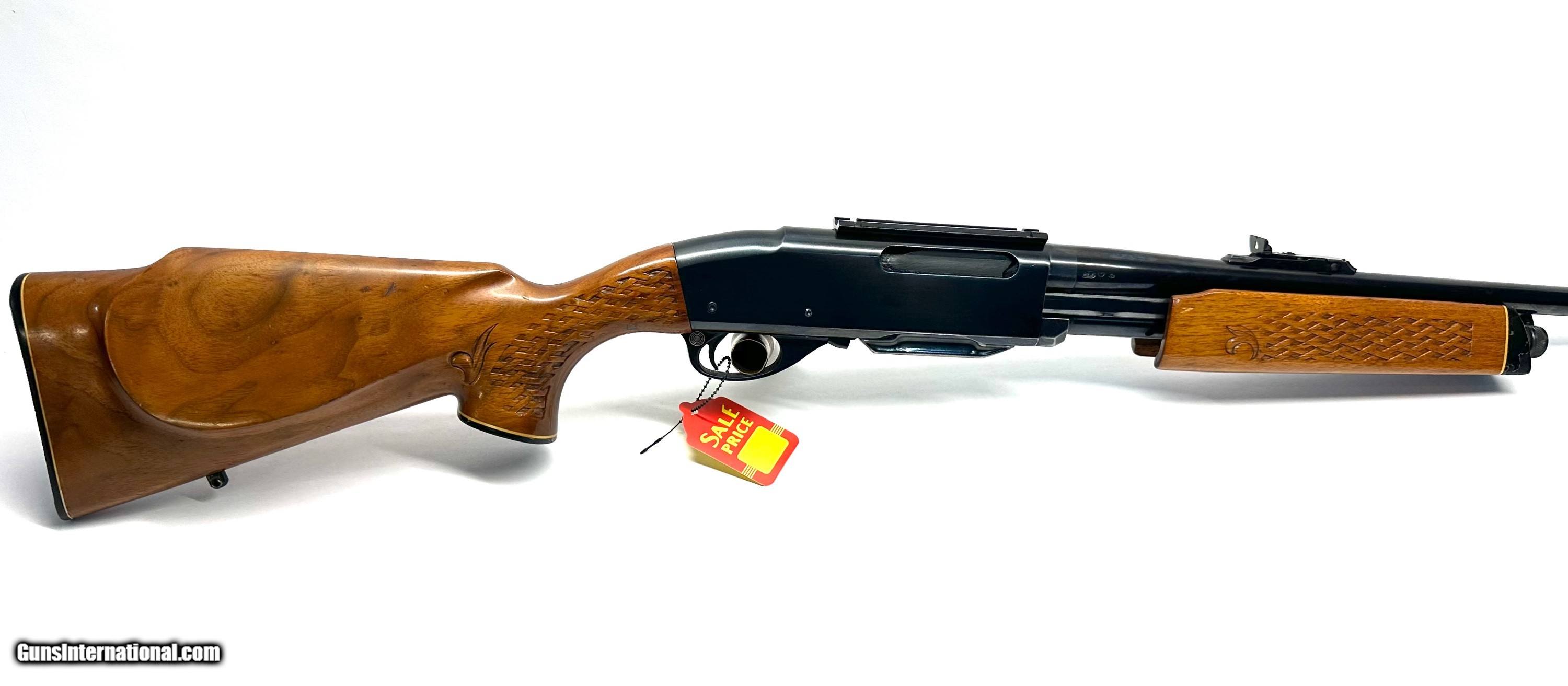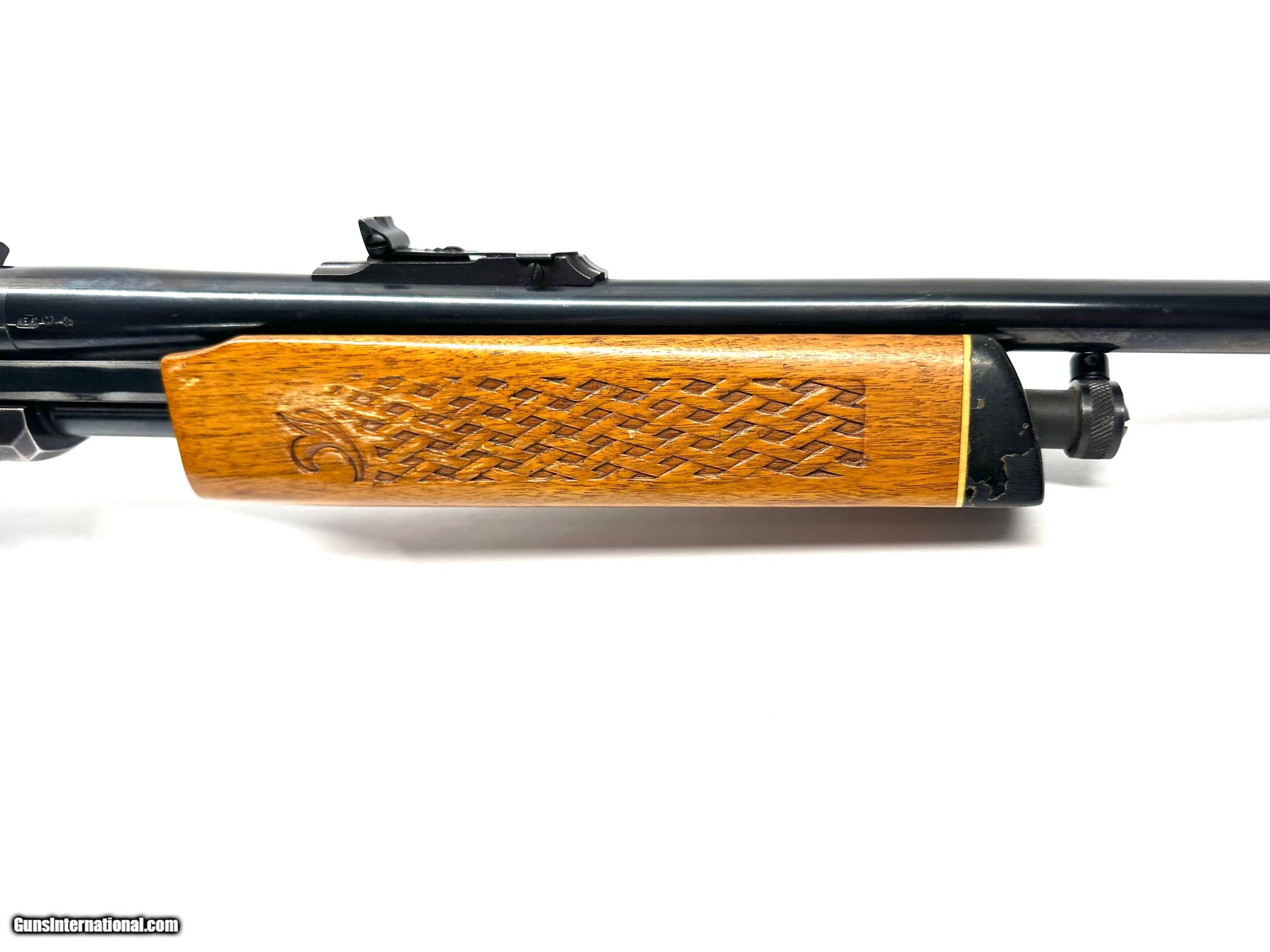 Description: This is a Remington 760 It is the newer style pump operation. This rifle has a BDL bassket weave stock set and has a left handed monte Carlo style cheek piece. It has a 22" barrel with a mirror like bore. THe bluing is respectable at an estimated 90+ % with the wear being at the muzzle and Sharp edges of the receiver and magazine. The finish is peeling a bit on the blace stock accents and it has small chip missing from a repair in the stock. It is shown clearly in the pictures. Flat 35.00 Shipping fee No Credit Card Fees SOLD Manufacturer: Remington Model: 760 Barrel Length: 22 Condition: Good |