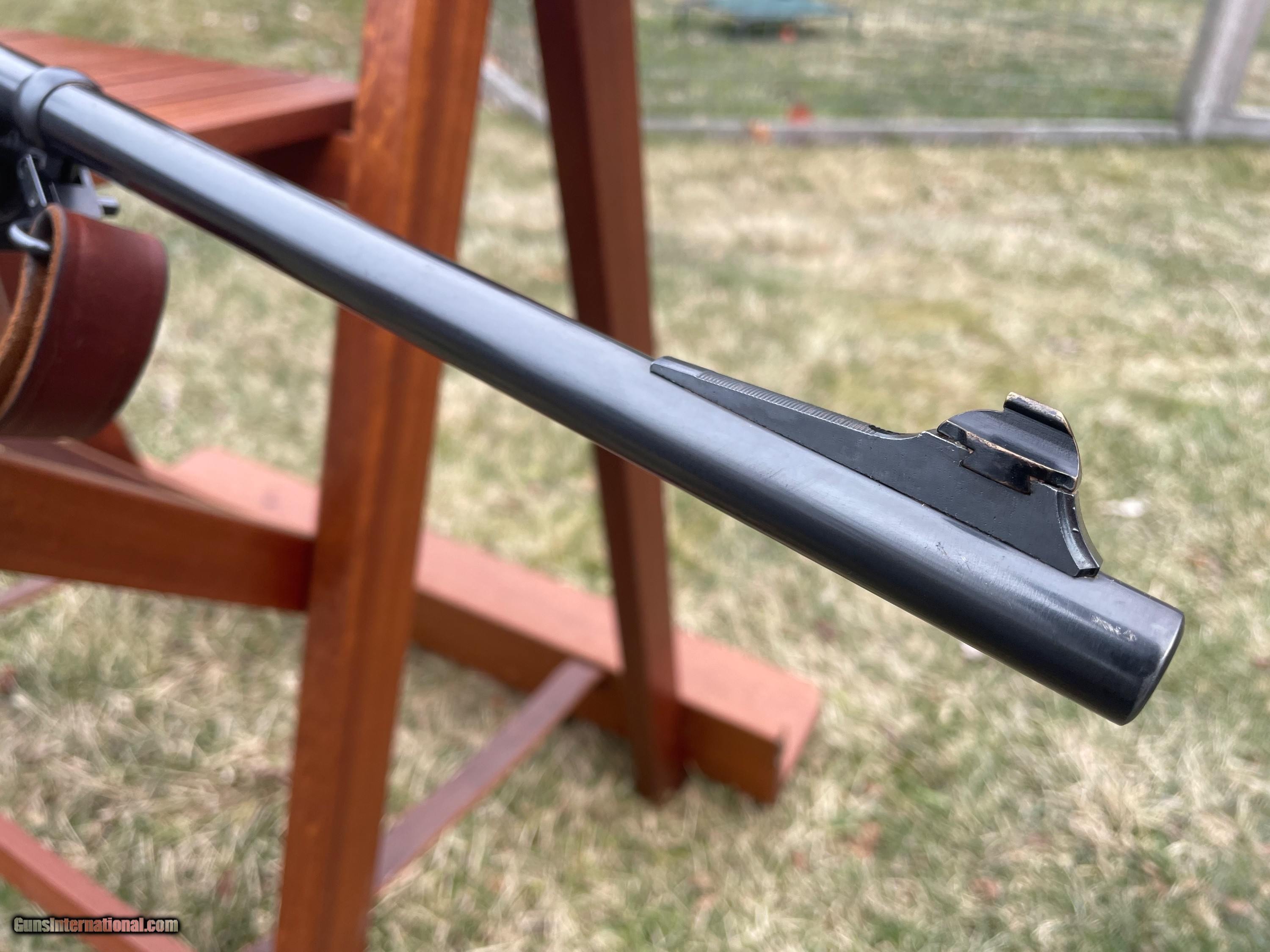 Does come with a 4x32 fixed power scope. Iron sights with peep ring bases. Comes with one magazine.