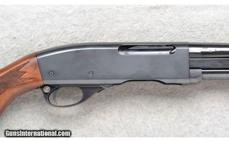 Description: This Remington Model 760 Carbine Gamemaster is a right hand pump action rifle in .30-06 Sprg. Cal. It has an 18 inch barrel. A raised blade front sight and an adjustable notch middle sight. It is drilled and tapped. The butt stock is a checkered grip hardwood with a black cap. The forearm is a checkered grip hardwood. This gun has been refurbished. .30-06 Springfield SOLD Chambers: Detachable Magazine. Metal Condition: Excellent. Has been refinished. Wood Condition: Excellent. Not original. Has been replaced. Bore Condition: Excellent. Barrels: 18 inch. Stock Dimensions: LOP 13 inch. Fore End: Checkered grip hardwood. Butt Pad: Checkered aluminum plate. Weight: 7 Lb. 14 Oz. Sights: Raised blade front. Adjustable notch middle. Drilled and tapped. Item Location: Richfield, WI |