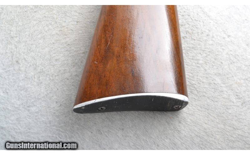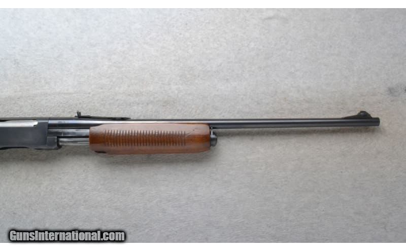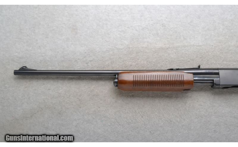 Description: This Remington Model 760 Gamemaster is a right hand pump action repeating rifle in .30-06 Sprg. Cal. It has a 22 inch barrel. A raised blade front sight and an adjustable notch middle sight. The butt stock is a smooth grip walnut pistol grip. The forearm is a grooved grip walnut. Manufactured 1953. .30-06 Springfield SOLD Chambers: Detachable Magazine. Metal Condition: Very Good. Some minor freckling and minor handling/use marks. Wood Condition: Good. Light handling marks. Appears refinished. Bore Condition: Excellent. Barrels: 22 inch. Stock Dimensions: LOP 13 3/8 inches. Fore End: Grooved grip walnut. Butt Pad: Remington grooved aluminum plate. Weight: 6 lb. 12 oz. Sights: Raised blade front. Adjustable notch middle. Item Location: Richfield, WI |
