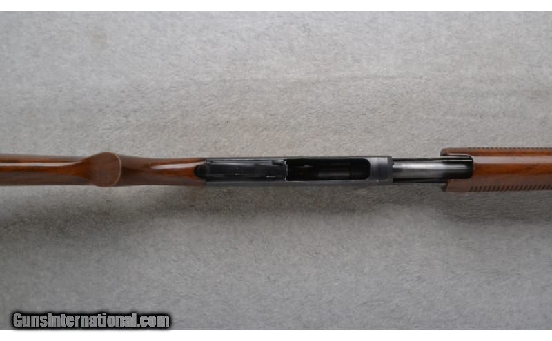 Description: This Remington Model 760 Gamemaster is a right hand pump action repeating rifle in .30-06 Sprg. Cal. It has a 22 inch barrel. A raised blade front sight and an adjustable notch middle sight. The butt stock is a smooth grip walnut pistol grip. The forearm is a grooved grip walnut. Manufactured 1953. .30-06 Springfield SOLD Chambers: Detachable Magazine. Metal Condition: Very Good. Some minor freckling and minor handling/use marks. Wood Condition: Good. Light handling marks. Appears refinished. Bore Condition: Excellent. Barrels: 22 inch. Stock Dimensions: LOP 13 3/8 inches. Fore End: Grooved grip walnut. Butt Pad: Remington grooved aluminum plate. Weight: 6 lb. 12 oz. Sights: Raised blade front. Adjustable notch middle. Item Location: Richfield, WI |