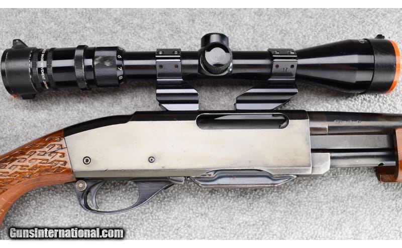 Description: This Remington 760 Gamemaster in .30-06 Sprg. remains in very good condition overall. The wood shows handling marks on the stock and forend and the buttstock has a heavy coat of unknown finish. The original bluing shows some wear around the magazine as well as on the operating arms. The rifle is equipped with a 3-9x40 Clearfield scope which sits in extra high see through scope rings. NO Box!!! .30-06 Springfield SOLD Metal Condition: Very Good Wood Condition: Very Good Bore Condition: Excellent Barrels: 22 Triggers: Factory Stock Dimensions: 13 3/8" LOP Fore End: Press Checkered - Press checkered Pistol Grip Butt Pad: Checkered Black Remington Butt Plate Weight: 8 1/2 lbs. Sights: Post and Bead Adjustable Front - V Notch Rear - Clearfield 3-9x40 Scope with Duplex Reticle - See Through Scope Mount Item Location: Wheeling |