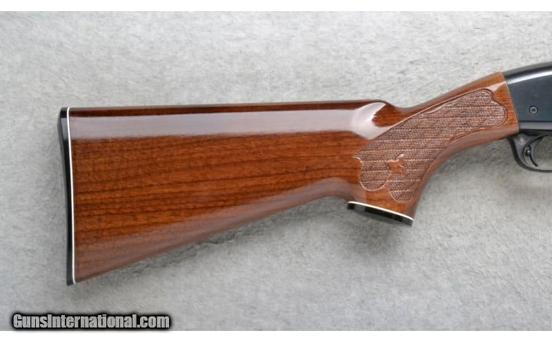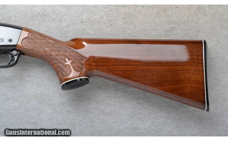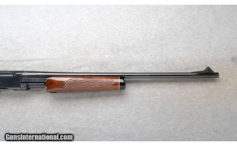 Description: This Remington Model 760 Gamemaster is a right hand pump action rifle in .35 Rem. Cal. It has a 22 inch barrel. A raised blade front sight and an adjustable aperture rear sight. The butt stock is a checkered grip walnut pistol grip with a black cap. The forearm is a checkered grip walnut with a black tip. Manufactured 1979. .35 Remington SOLD Chambers: Detachable Magazine. Metal Condition: Excellent. Wood Condition: Excellent. Bore Condition: Excellent. Barrels: 22 inch. Stock Dimensions: LOP 13 1/4 inches. Fore End: Checkered grip walnut with a black tip. Butt Pad: Checkered black plate. Weight: 6 lb. 10 oz. Sights: Raised blade front. Adjustable aperture rear. Item Location: Richfield, WI |