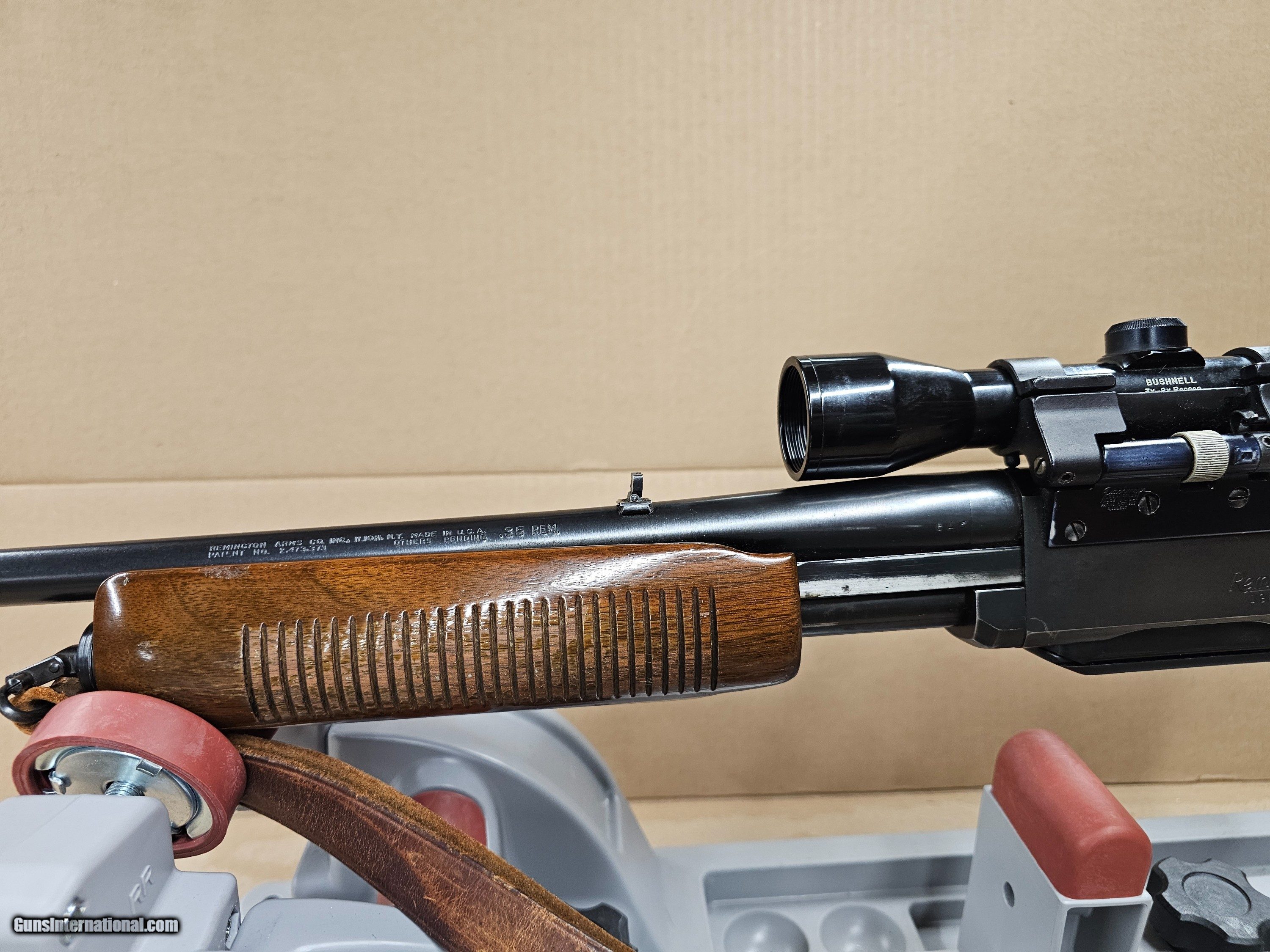 Description: "Remington 760 Gamemaster .35 Remington" For sale is a Remington model 760 Gamemaster, chambered in .35 remington. The barrel is 22", and the date code puts the firearm as being produced in 1952 or 1980. The firearm is in okay condition. Function is smooth, bore is clean, but bluing shows definite signs of wear, primarily around the sides of the receiver and the base of the barrel/pump. The furniture is worn, with small spots on the stock, and very clear signs of glove use and varnish wear on the left and right side of the foreend. All card transactions will have a 3.5% non-cash adjustment applied to them. $80 Shipping to the lower 48, which includes a soft case and insurance. SOLD Rifle Caliber: .35 Remington |