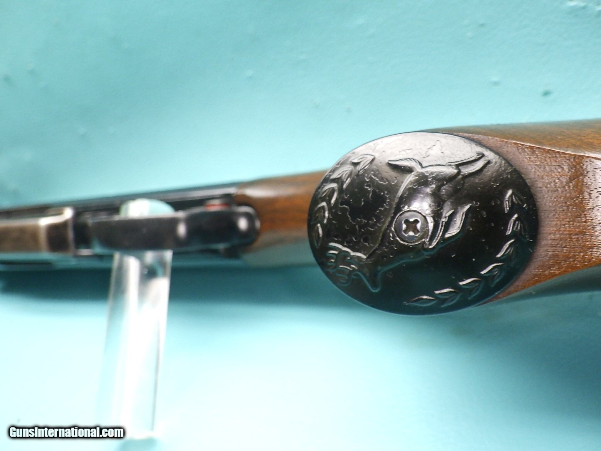 Description: apacity: 4+1 Also Known As: Remington 760 Gamemaster ADL "Five-Diamond" Make: Remington Arms Co. Model: 760 Gamemaster ADL Finish: Blued steel (noted wear on left receiver and mag) Caliber: .30-06 Springfield Action: Pump action with rotating bolt Barrel Length: 22" Bore: Bright and clean Stock Material: Checkered walnut with very desirable “five diamond” forend pattern Sights: Factory iron sights (rear elevator missing) Features: Cross-bolt safety, detachable box magazine, smooth pump action, classic five-diamond forend. Pump-action centerfire rifle with rotating bolt head for strong lock-up and reliable accuracy Scope: None - drilled and tapped receiver MFG Date: 1954 (barrel code “WA”) Extras: One 4-round magazine included, Red Head ventilated recoil pad (ill-fitting) Condition: Good vintage condition—strong bore, solid mechanics, honest wear from use Shipping Cost: $45.00 Tech: DH110325.1399 Please refer to the photos for the overall condition. FFL is required. Here’s a piece of Remington history ready for the field or the rack—a 1954 Remington 760 Gamemaster ADL in .30-06, featuring the highly sought-after “five-diamond” forend. This early-production example showcases Remington’s innovative pump-action design with a rotating bolt for smooth, reliable cycling. It wears its age proudly with some finish loss and an old Red Head pad, but still delivers a bright bore and excellent function. Whether you’re a hunter who appreciates classic craftsmanship or a collector after the early Gamemaster charm, this rifle has that unmistakable mid-century Remington appeal and real field-ready heritage. Rifle Caliber: .30-06 Springfield Manufacturer: Remington Model: 760 Gamemaster ADL Serial Number: 216602 Barrel Length: 22 Condition: Good Metal Condition: Good Wood Condition: Good Bore Condition: Excellent Barrel Type: Round Action: Pump Manufacture Date: 1954 Price: $1,399.00 Contact Seller |