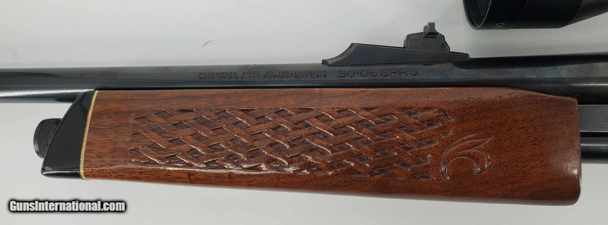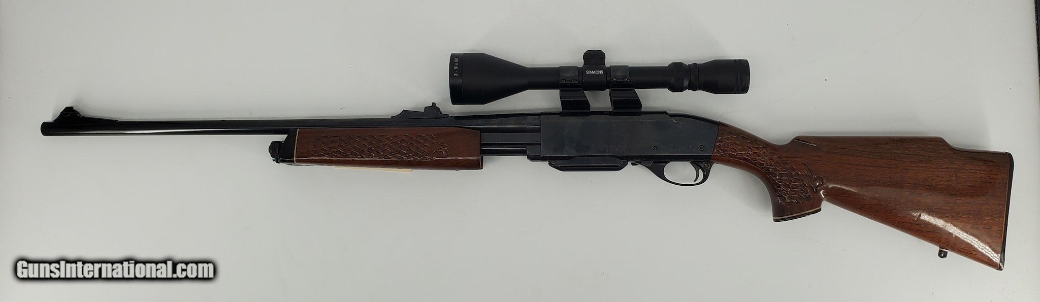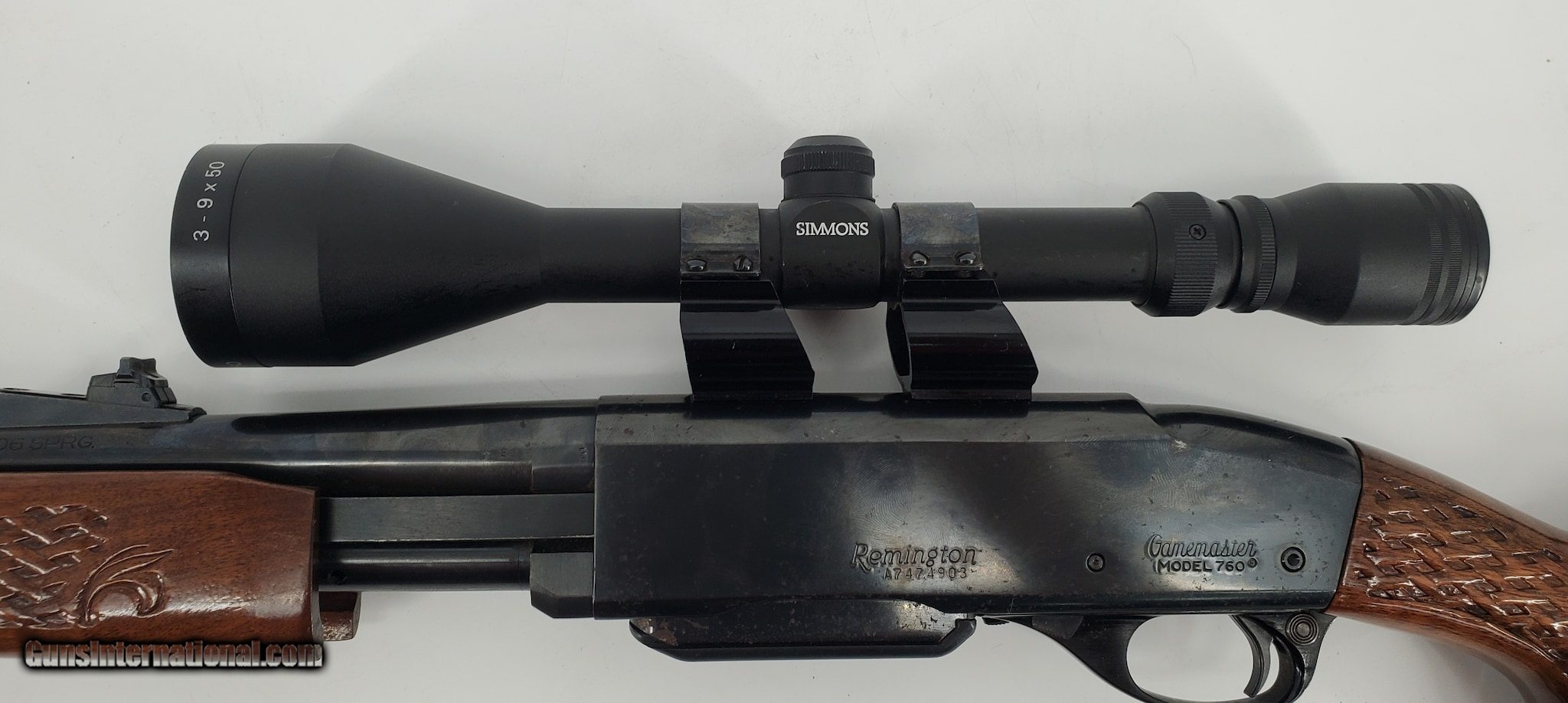 Description: Guns Listing ID: 445865 REMINGTON 760 GAMEMASTER IN 30 06 SPRINGFIELD. THIS FIREARM COMES WITH ONE 4 SHOT BOX MAG, A SIMMONS 3-9 x 50 SCOPE AND ALSO HAS WOOD ENGRAVINGS ON THE PUMP SLIDE AND GRIP. THIS MODEL WAS MADE BY REMINGTON FROM 1952-1981. SOLD Manufacturer: REMINGTON Model: 760 GAMEMASTER Caliber Info: 30 06 SPRINGFIELD Condition: Used - Non-Certified Barrels: 2.25 BARREL Finish: BLACK /W WOOD STOCK |